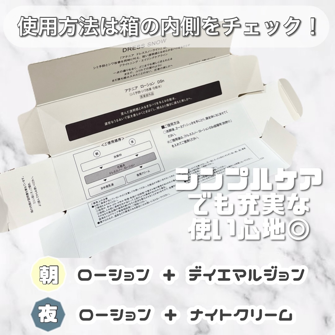 #PR#アテニア@attenir_official🌟アテニア商品名:アテニア ドレススノーローション【医薬部外品】販売名:アテニアローションDSn洗顔後、2~3プッシュ分を肌になじませて使用します。美白※1もエイジングケア※2も気になる方にお...