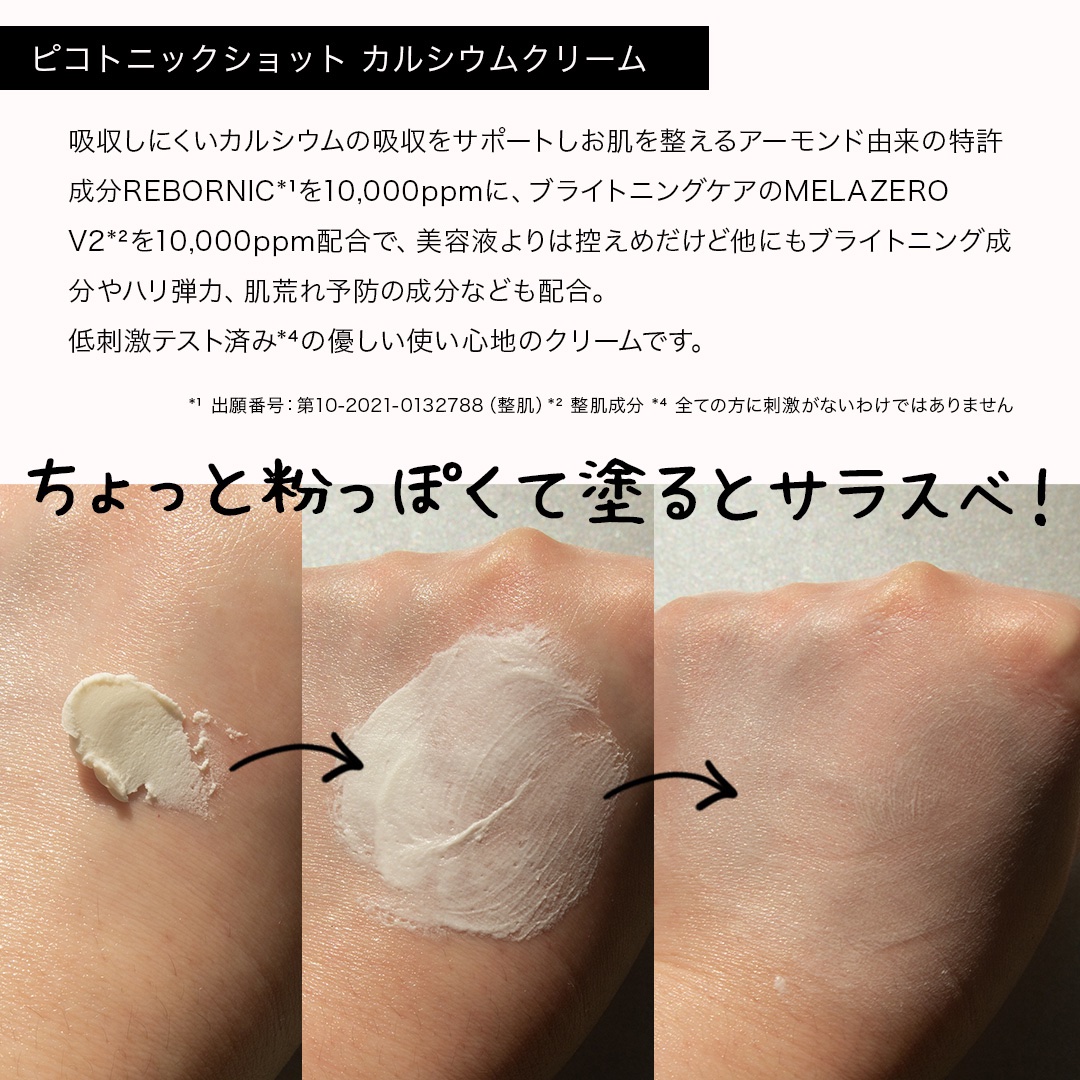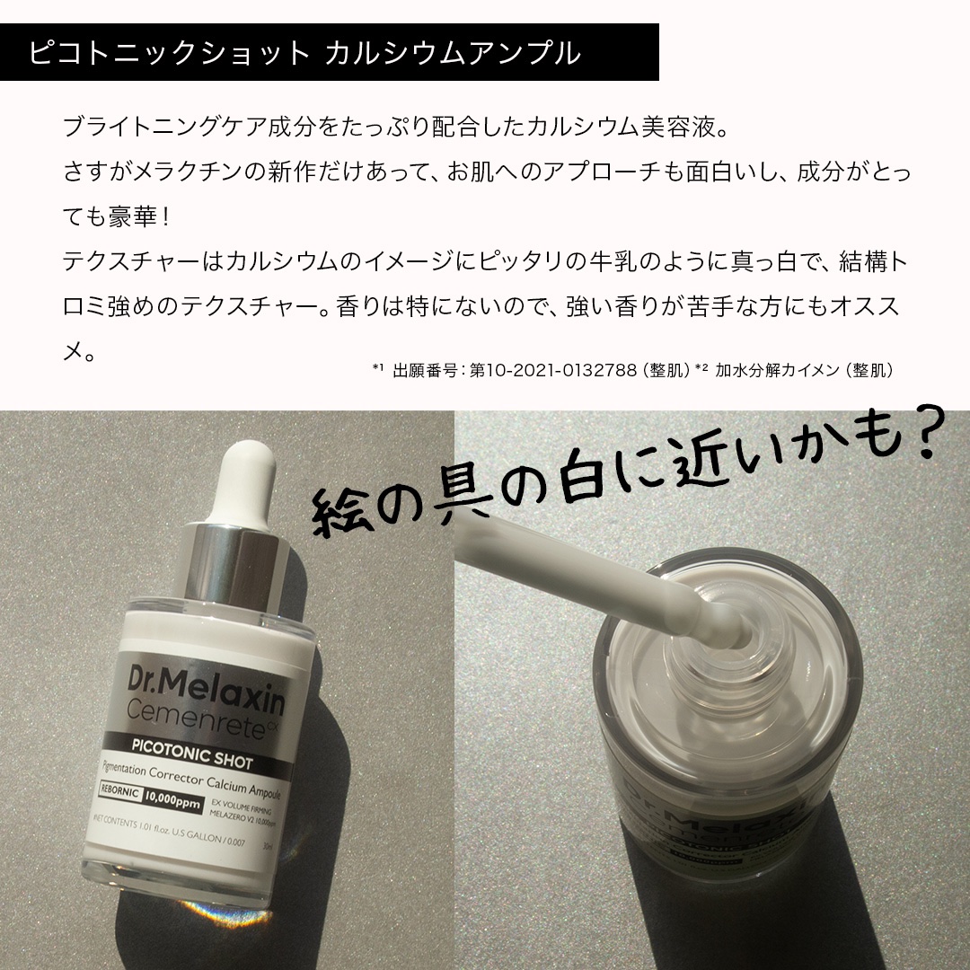 カルシウム(特許成分REBORNIC*)10,000ppm配合! (*保湿成分:BG、水、アーモンド果実エキス、シロキクラゲエキス、タベブイアインペチギノサ樹皮エキス) アイケアにも顔に使うのも🙆 使いやすいテクスチャーと使用感だと思います。 それぞれ違うテクスチャーと使用感🌟 目元ケアにアンプル使うの初めてだったんですが、大事な部分だと再認識しました。