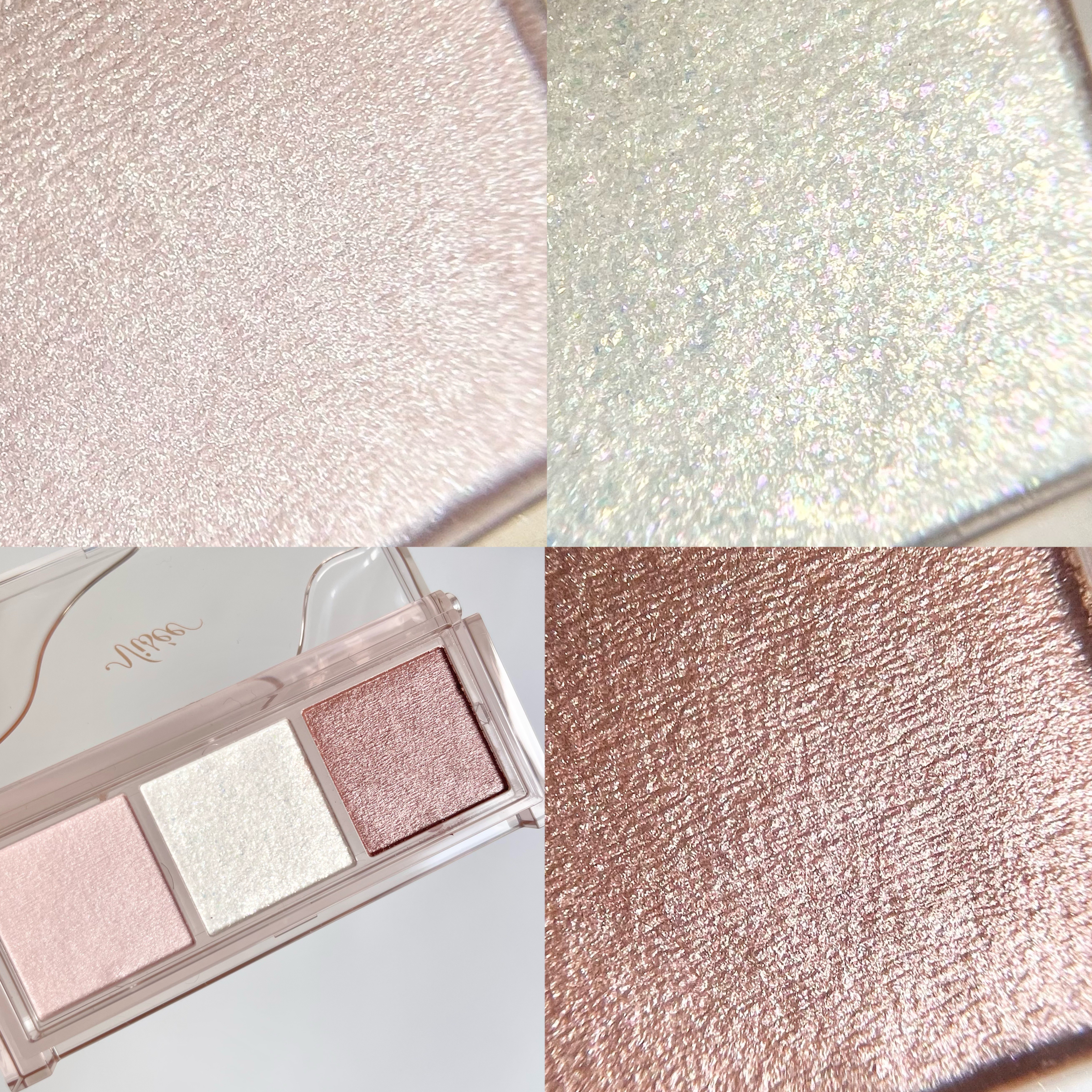 - 角度によって色が変わる高輝度偏光パールを多量配合。動くたび輝きが変化する高密着な3色入りセットアイカラー。 ● 高輝度偏光パールと大粒グリッターを贅沢に配合した、3 色セットのアイカラーです。 まぶたにしっとりとけこむようにフィットして、大粒パールやグリッターも高密着。 大胆に輝き、色気を放つ目もとがつづきます。 ● 見る角度や光の当たり具合により色味が変化する高輝度偏光パール(カラーチェンジグリッター)とクリアで高輝度な大粒グリッターを組み合わせて配合。 まばたきや動きにより色と輝きが変化する、魅力的な目もとを演出します。 ● 化粧もちを高めるフィットオイル成分配合。まぶたにピタッと密着し、パール落ちを防止。 高い透明感とツヤ感も付与し、美しい仕上がりが持続します。 ● カラーによって異なるベースを採用。 [ハイライトカラー(A)] もちっと生質感で、肌にとけこむように密着するスフレベース。 繊細なパールの輝きで、まぶたに光を取りこみ、下地効果でアイカラーの密着も高めます。 [グリッターカラー(B)] 輝きを最大限に引き出す透明性の高いベースに、高輝度偏光パールと大粒グリッターを贅沢に配合。 密着性の高いフィットオイル成分とペーストオイルをかけあわせることで、パール落ちも防止。 [アクセントカラー(C)] のび広がりのよさと高い密着性を両立して美発色を叶えたベース。 フィットオイル成分を最高量配合(パレット内比)し、粉体をコーティングすることで クリアで美しい発色と上質なツヤが持続します。 ● 無香料