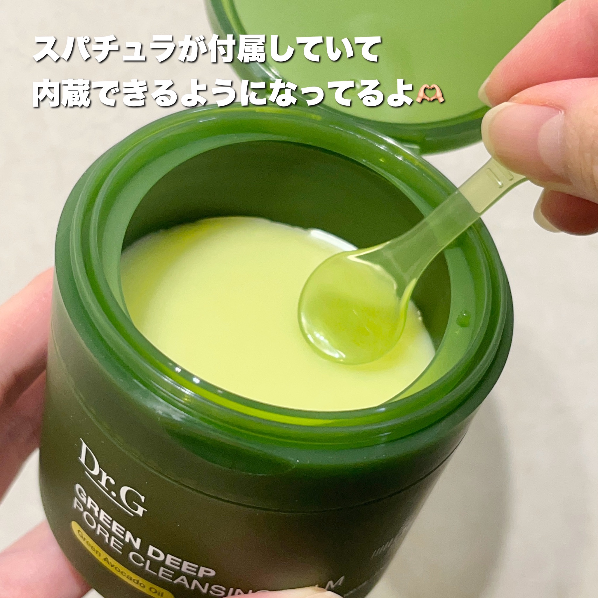 《Dr.G グリーンディープポアクレンジングバーム》@dr.g_official_jp様のグリーンディープポアクレンジングバーム3in1のアボカドシャーベットクレンジングバーム最初はバーム状メイク汚れなどを溶かしてオイルに変化ブラックヘッドや...