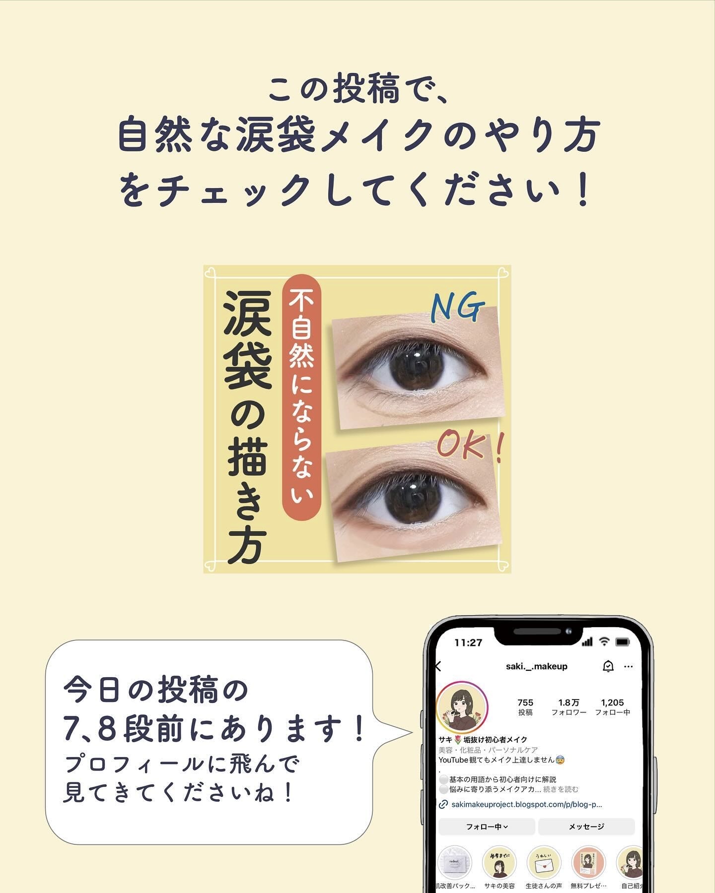 涙袋メイクがなんか似合わない…って感じてる人はコッチがおすすめ🌵✼••┈┈••✼••┈┈••✼••┈┈••✼••┈┈••✼★メイクの基礎知識に自信がない人、自己流で続けてきた人はプロフィールもチェックしてくださいね🔎🤍↓@saki._.mak...