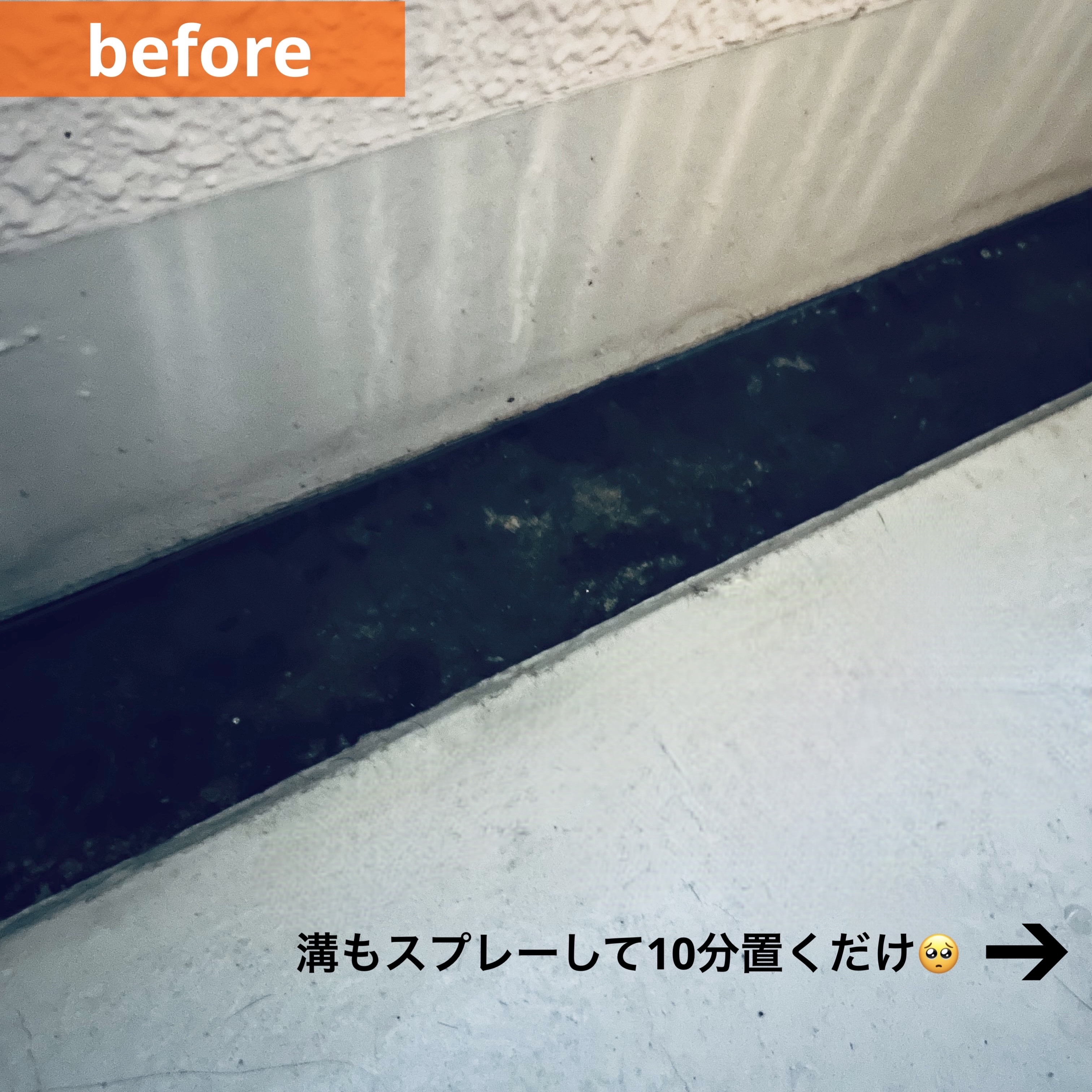 スプレーしてほんとに放置していただけなんですが、汚れが落ちて綺麗になっていました🤩✨ スプレーして、🧽でゴシゴシしたり、擦ったりしなくてもピカピカに。 これは便利! ベランダ、浴室の汚れ、カビ汚れに! 気になった方はぜひ試してみてください♪