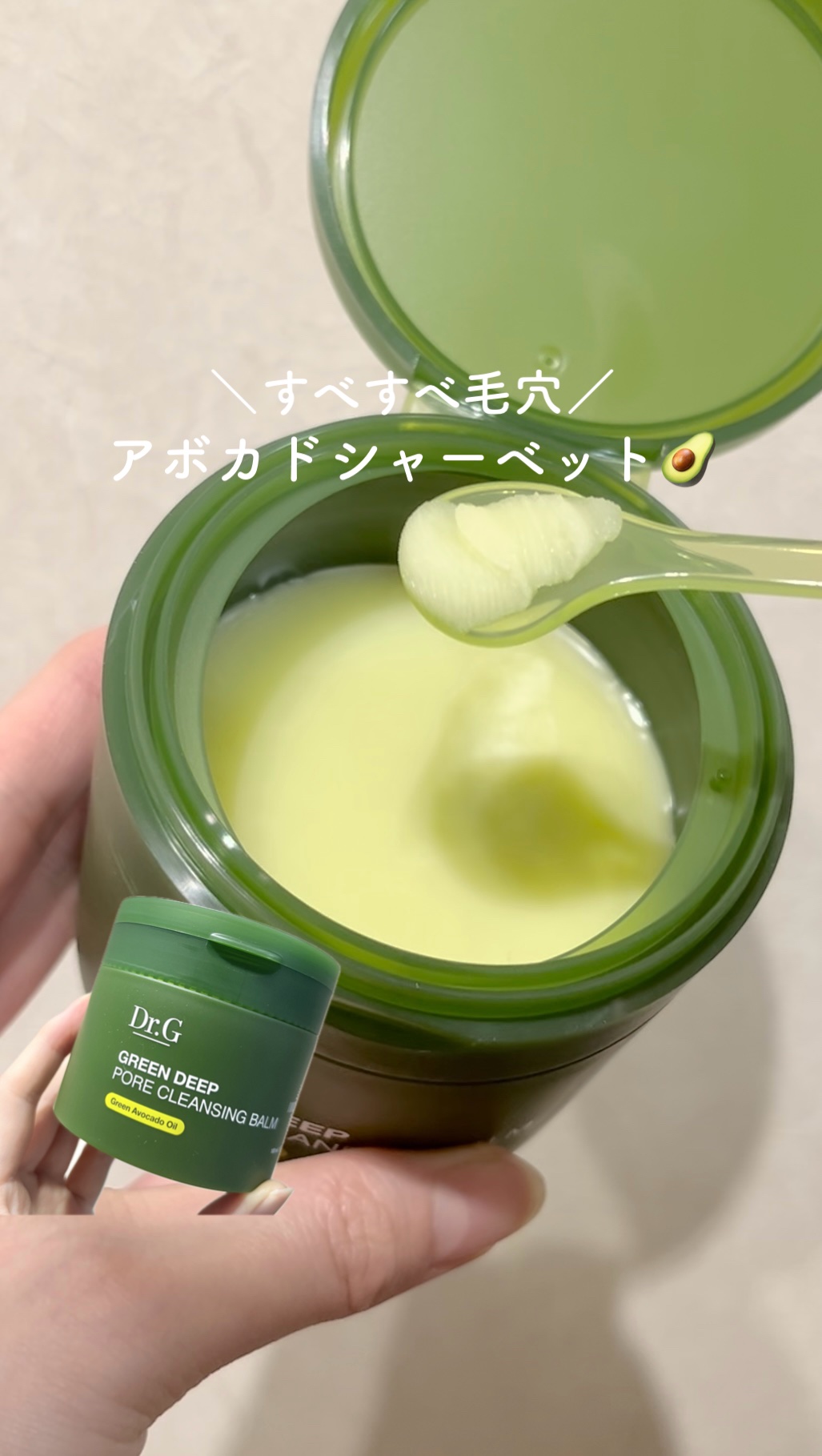 《Dr.G グリーンディープポアクレンジングバーム》@dr.g_official_jp様のグリーンディープポアクレンジングバーム3in1のアボカドシャーベットクレンジングバーム最初はバーム状メイク汚れなどを溶かしてオイルに変化ブラックヘッドや...