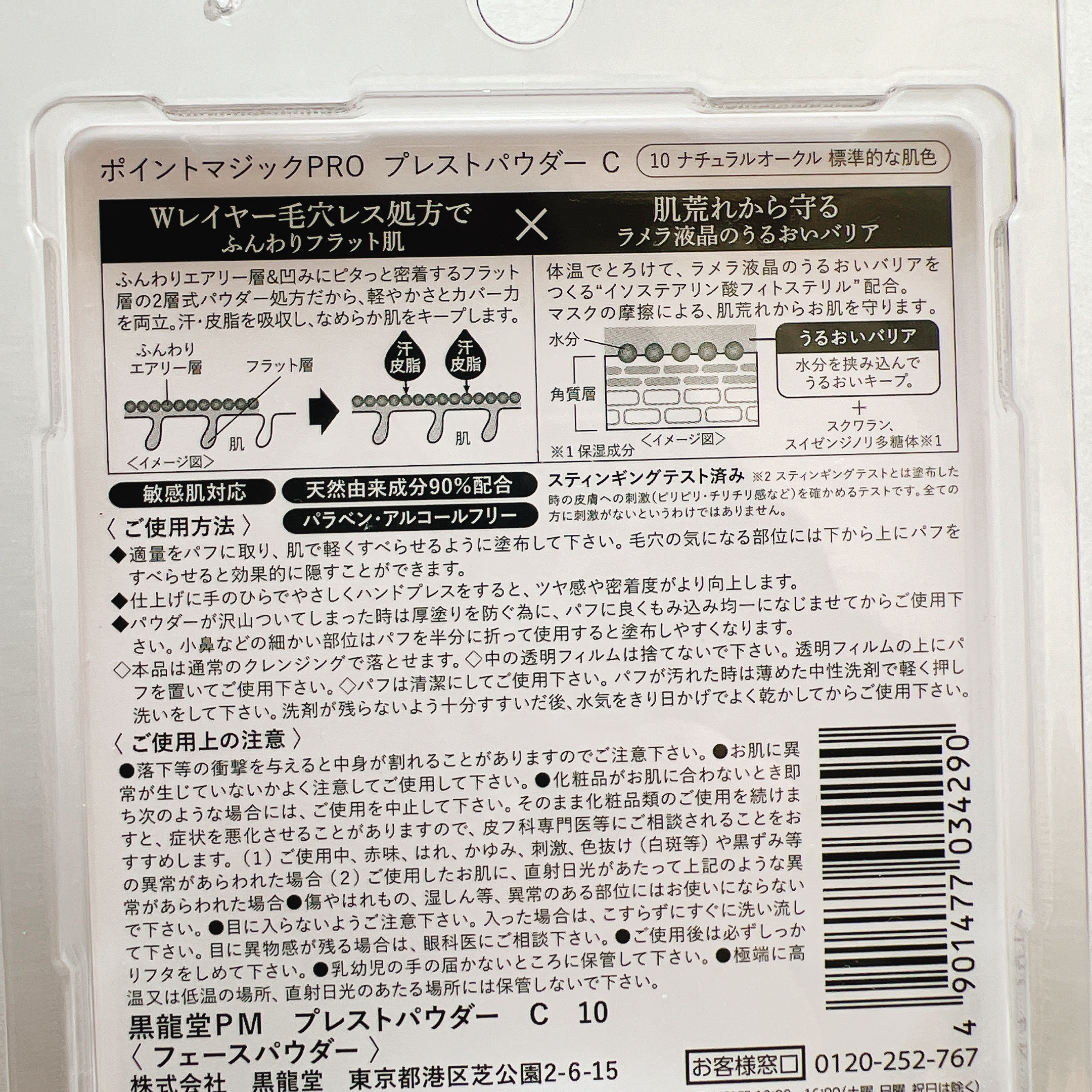 @株式会社黒龍堂様✨ポイントマジックPRO プレストパウダー✨お色は10ナチュラルオークル(標準的な肌色)ですこちらのプレストパウダーがとてもエアリー感触でさらに毛穴カバーもしっかり出来るのでお気に入り☆コンパクトなので持ち運びにもいいしプレ...