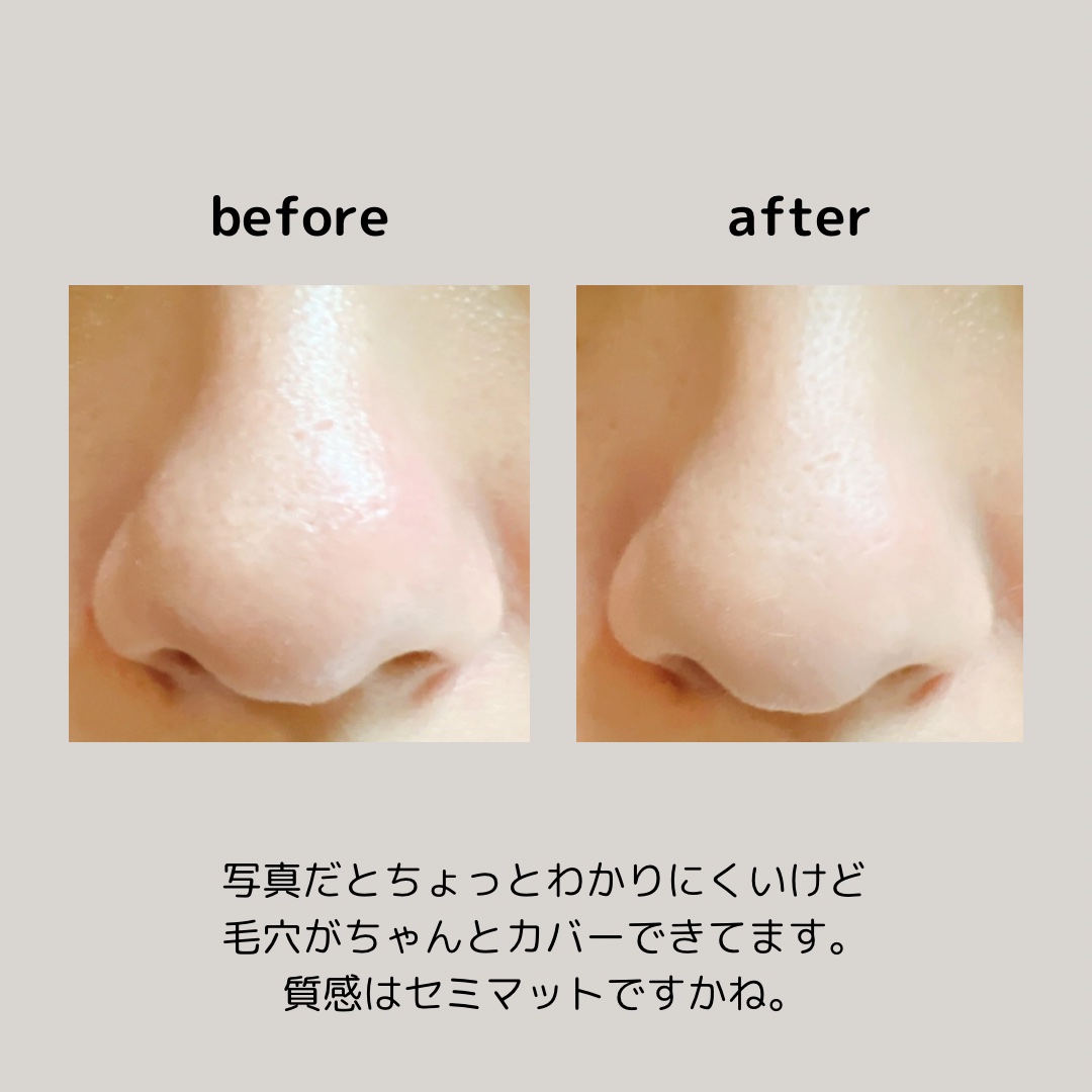 標準的な肌色の私にとって今回いただいた21番はちょうど良く、自然なメイクに仕上がりました。 こちらの商品を使用することで毛穴や肌のキメの悪さをしっかり、でも自然にカバーすることができました。 仕上がりは適度なツヤ感があって綺麗です。
