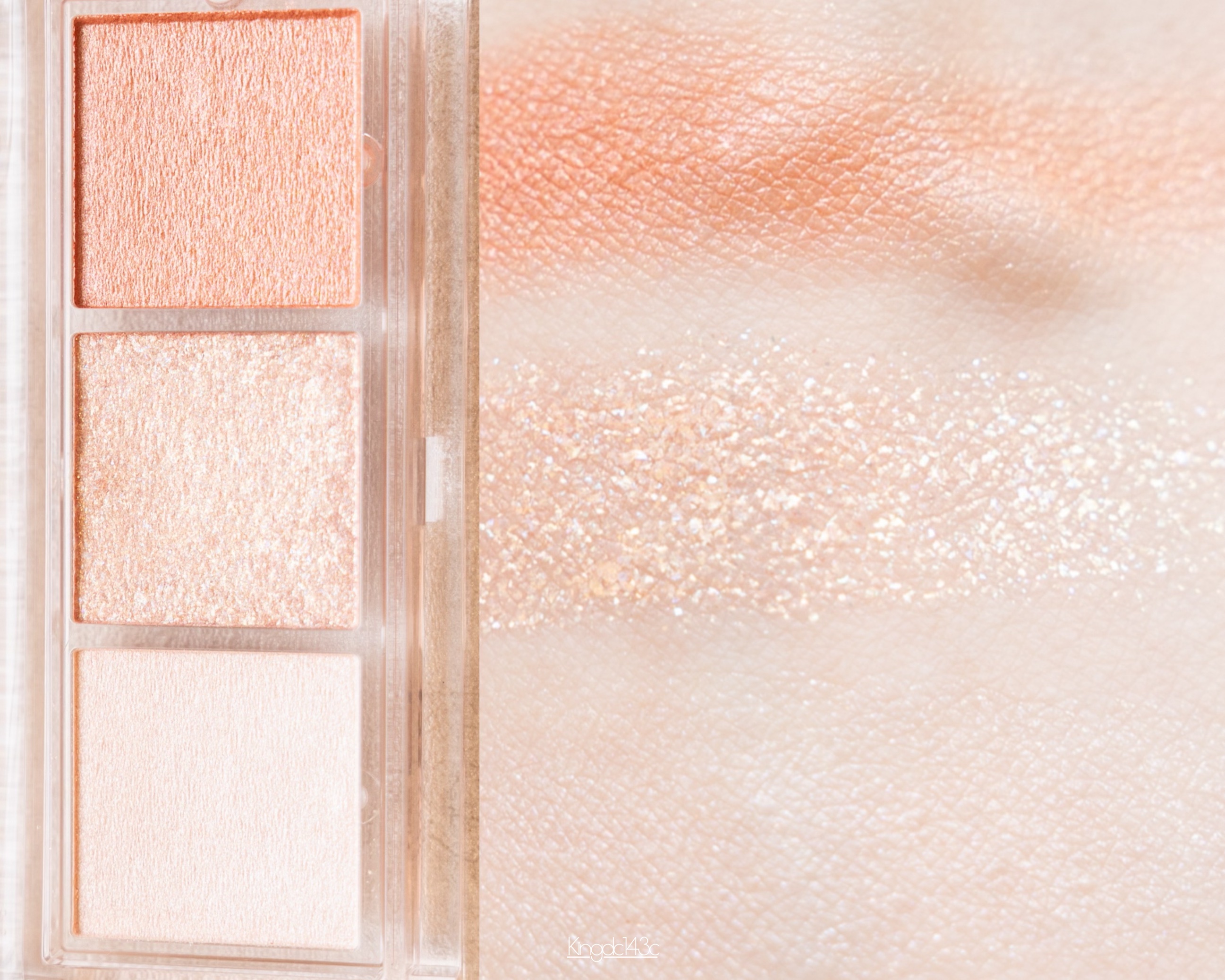 高輝度偏光パール×大粒グリッターを贅沢に配合した3色セットのアイカラー。角度によって色と輝きが変化する偏光パールが目元に魅力的な輝きを与えます! グリッターカラーがすごく可愛くてまぶた全体に塗ってもギラギラし過ぎない💫 パッケージはコンパクトでスリムなデザインでふた部分も水面のような立体感があり美しい💗