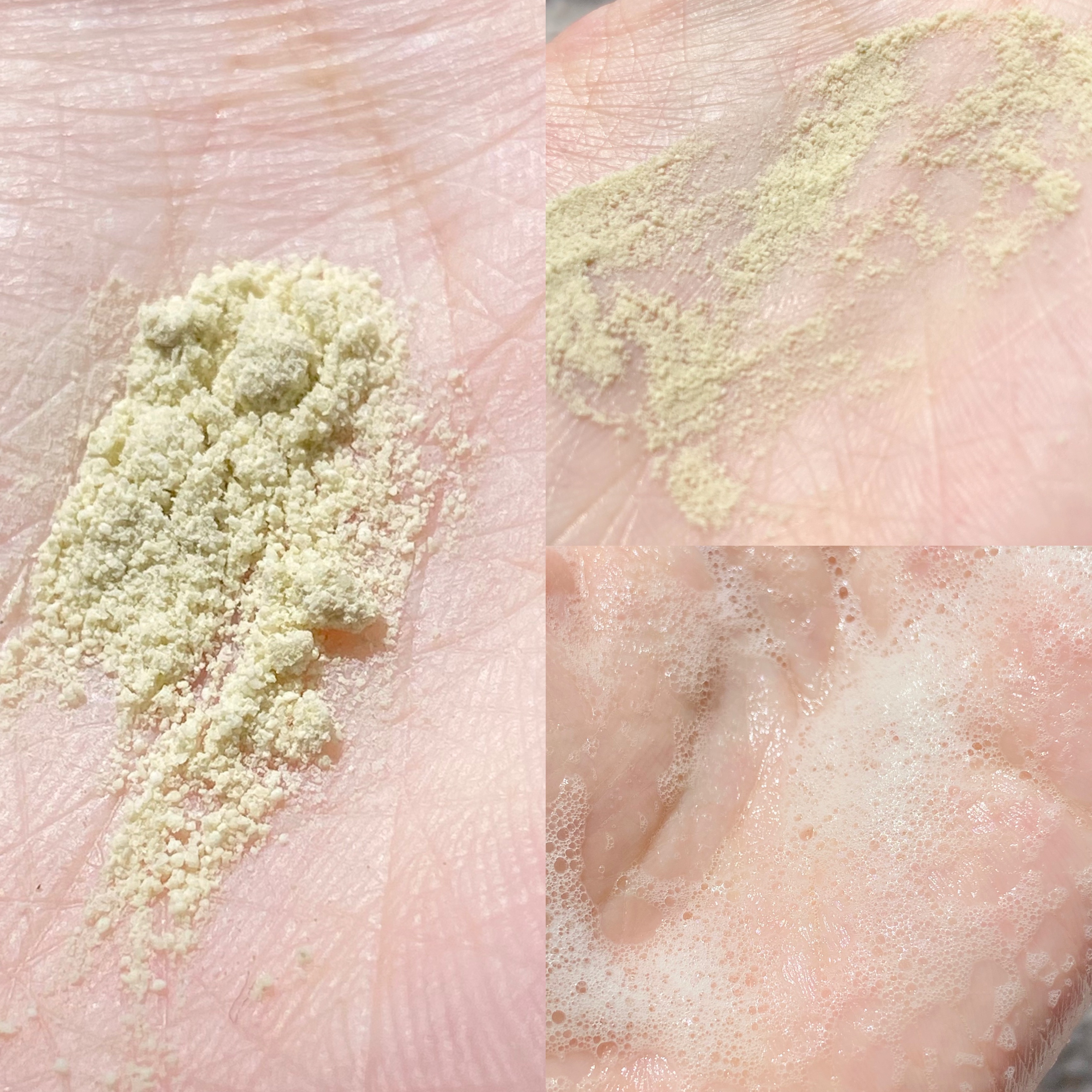 緑茶パウダー、パパイン酵素配合のパウダーウォッシュ🍃🫧 粒子の細かいパウダーで水を加えるとしゅわしゅわ軽い泡ができます😶🌫️ 洗い上がりはすっきりさっぱり〜〜〜! すべすべの肌触りに🤲 ほのかに香る緑茶の香りがとっても良い香り🍵𓈒𓏸