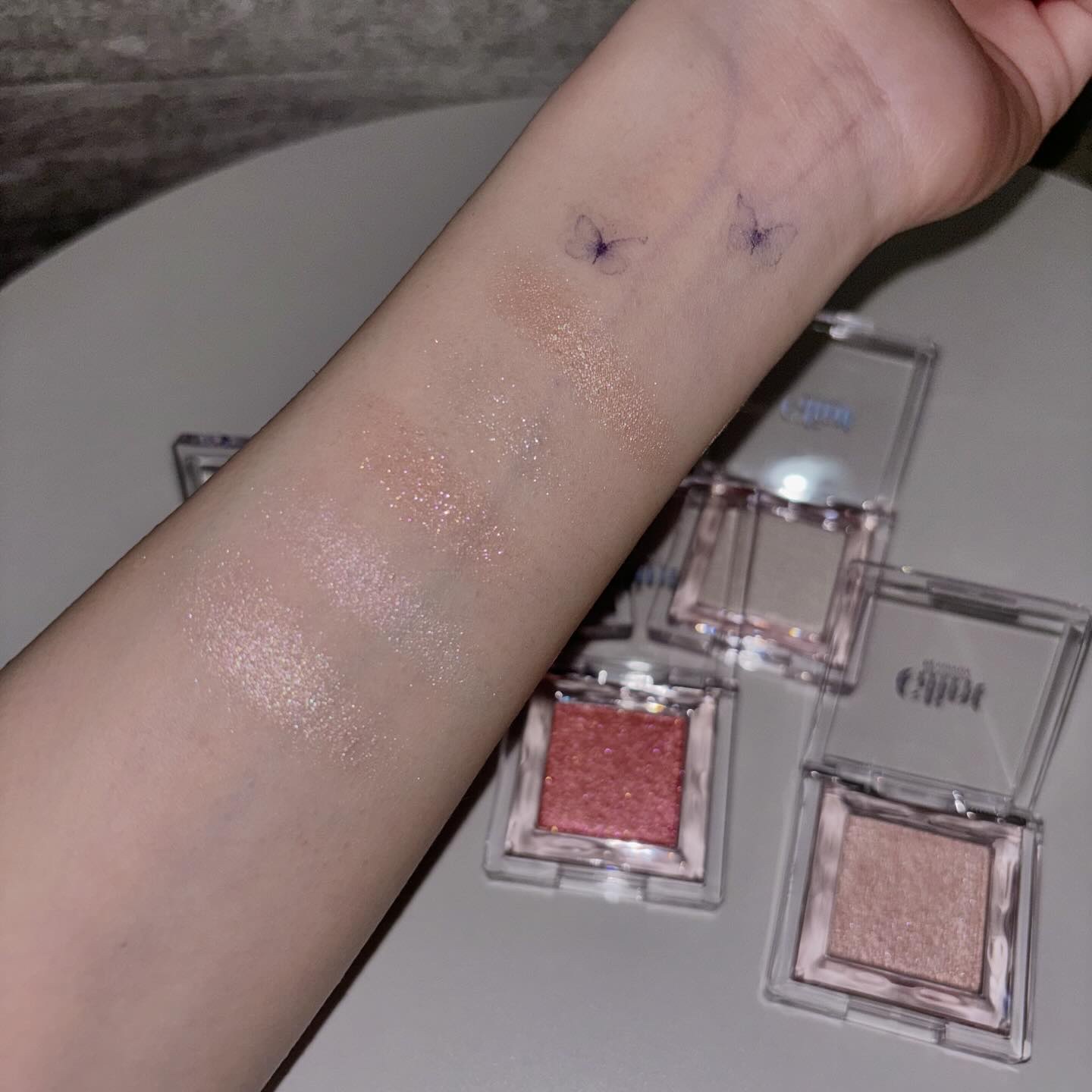 韓国ハイライト界でも人気なGlint💖 2つのカラーを試して比較してみました✨️ 05ピッチムーンはピンクベージュのようなカラーでハイライトの粒子がとても細かい! どちらも共通してキラキラと輝いてくれるのが本当に可愛いです⭐️ 一軍コスメの仲間入りです🌸