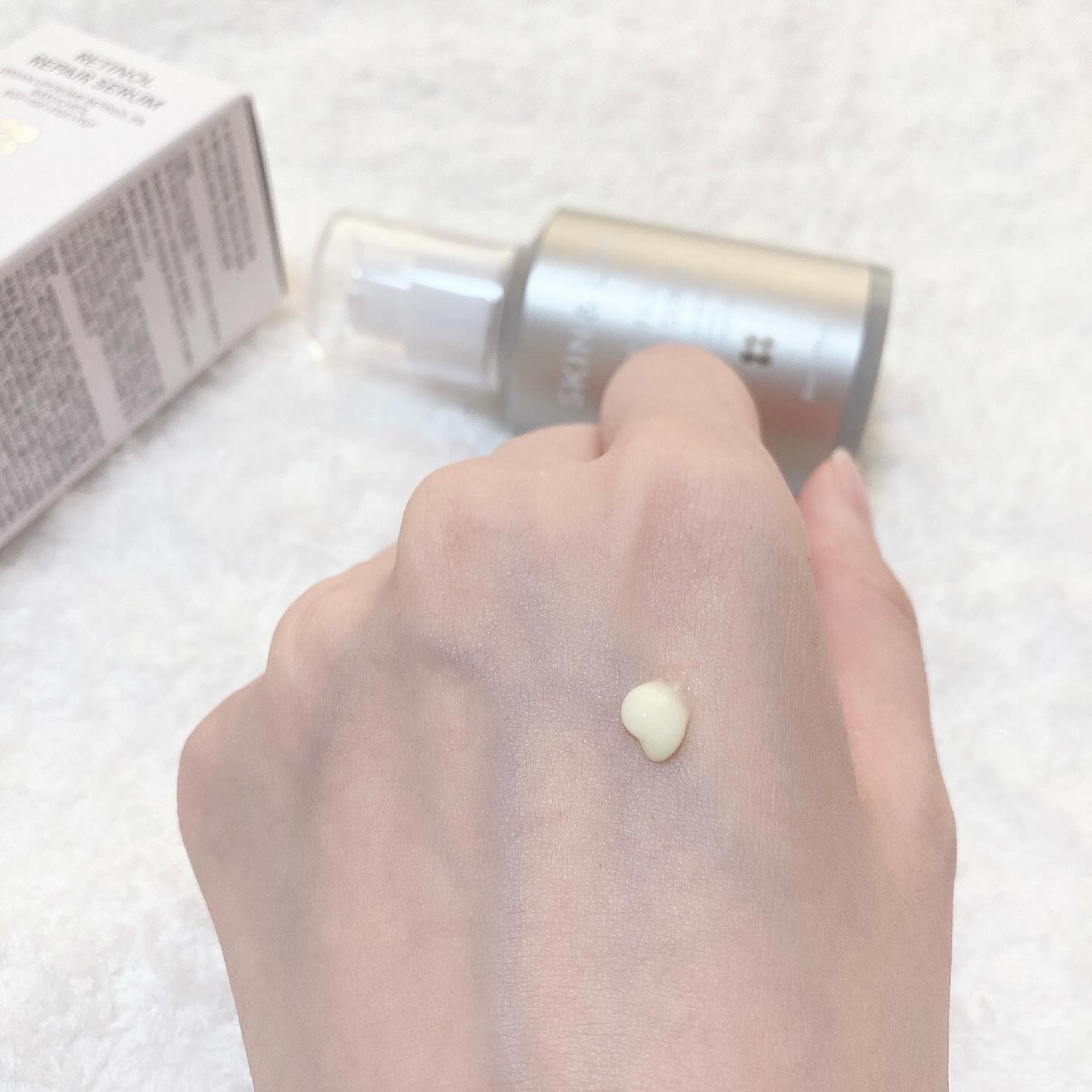 | 乳白色のトロッとしたセラム。柔らかくなめらかなセラムでお肌にのばしやすいよ😊 | 詳細を見る | ||