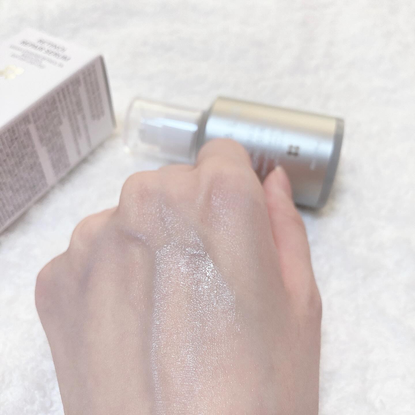 テクスチャーがめちゃくちゃトロトロでびっくり! トロトロ通り越して粘り気みたいな? 塗布後の状態が6時間つづくそうで、このトロミがつけおき美容の秘訣らしい。 オードロッパースポイト容器を採用していて、キャップを回すと自動的に1回分の使用量が吸い上がってくれるんだって。