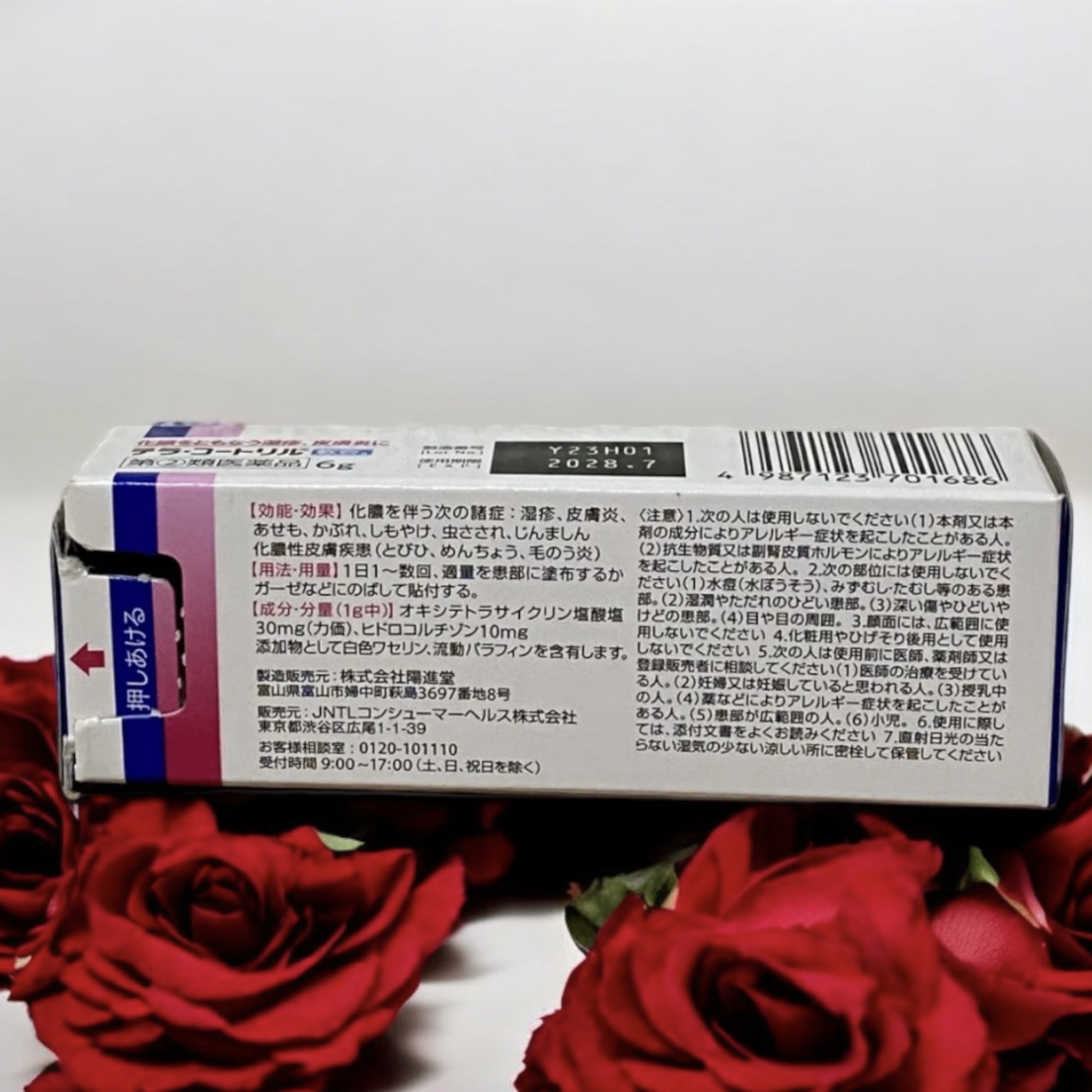 - 1g中の成分・分量 オキシテトラサイクリン塩酸塩・・・30mg(力価) ヒドロコルチゾン・・・10mg 添加物として白色ワセリン、流動パラフィンを含有します。
