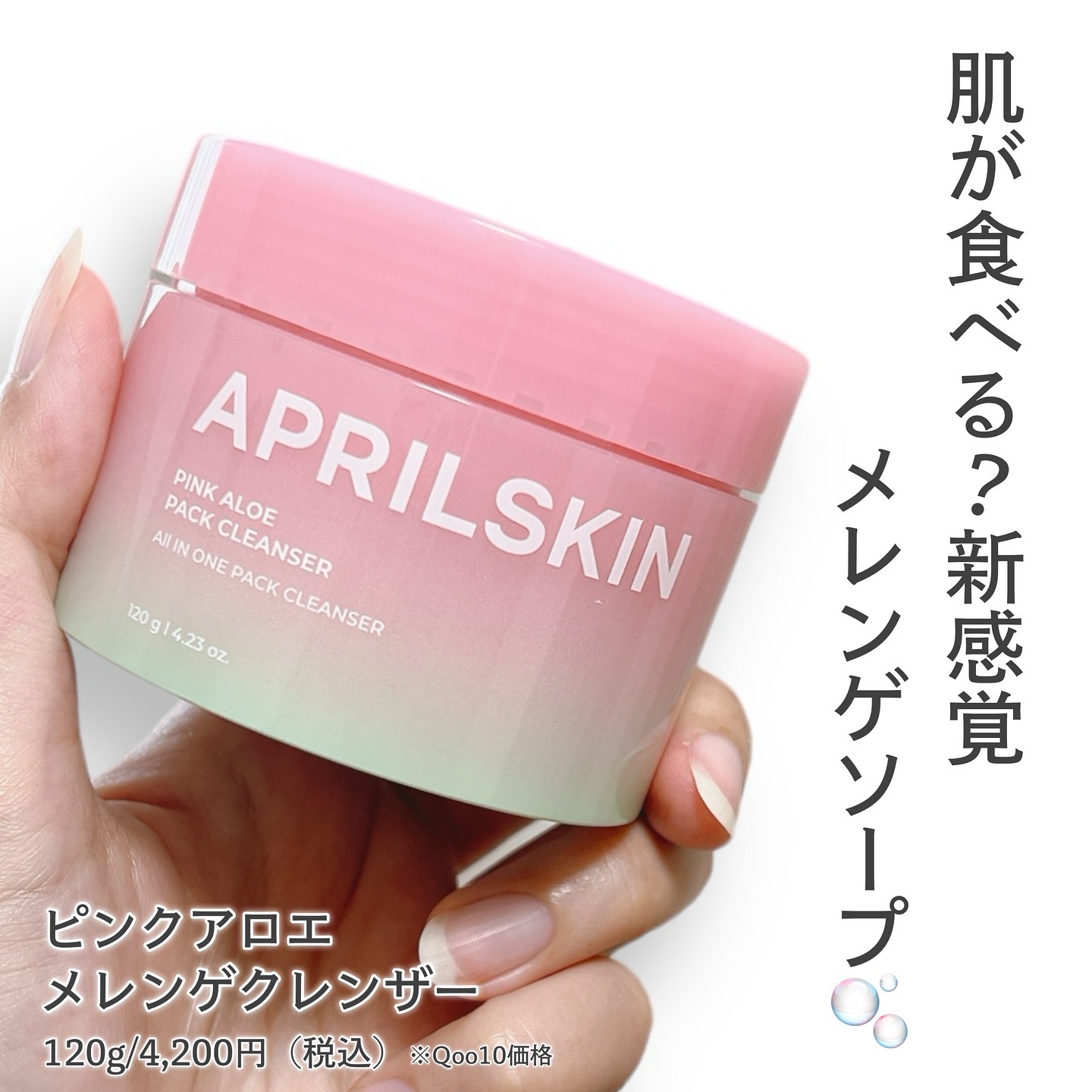 APRILSKINピンクアロエメレンゲクレンザー洗顔、パックにも使える新感覚2wayクレンザー🫧ピンクアロエや豆スクラブ、グリーンの部分はツボクサエキスや緑豆スクラブなどが配合されてるみたい🌿✨肌表面のザラつきを滑らかにしてくれて、汚れもスッ...
