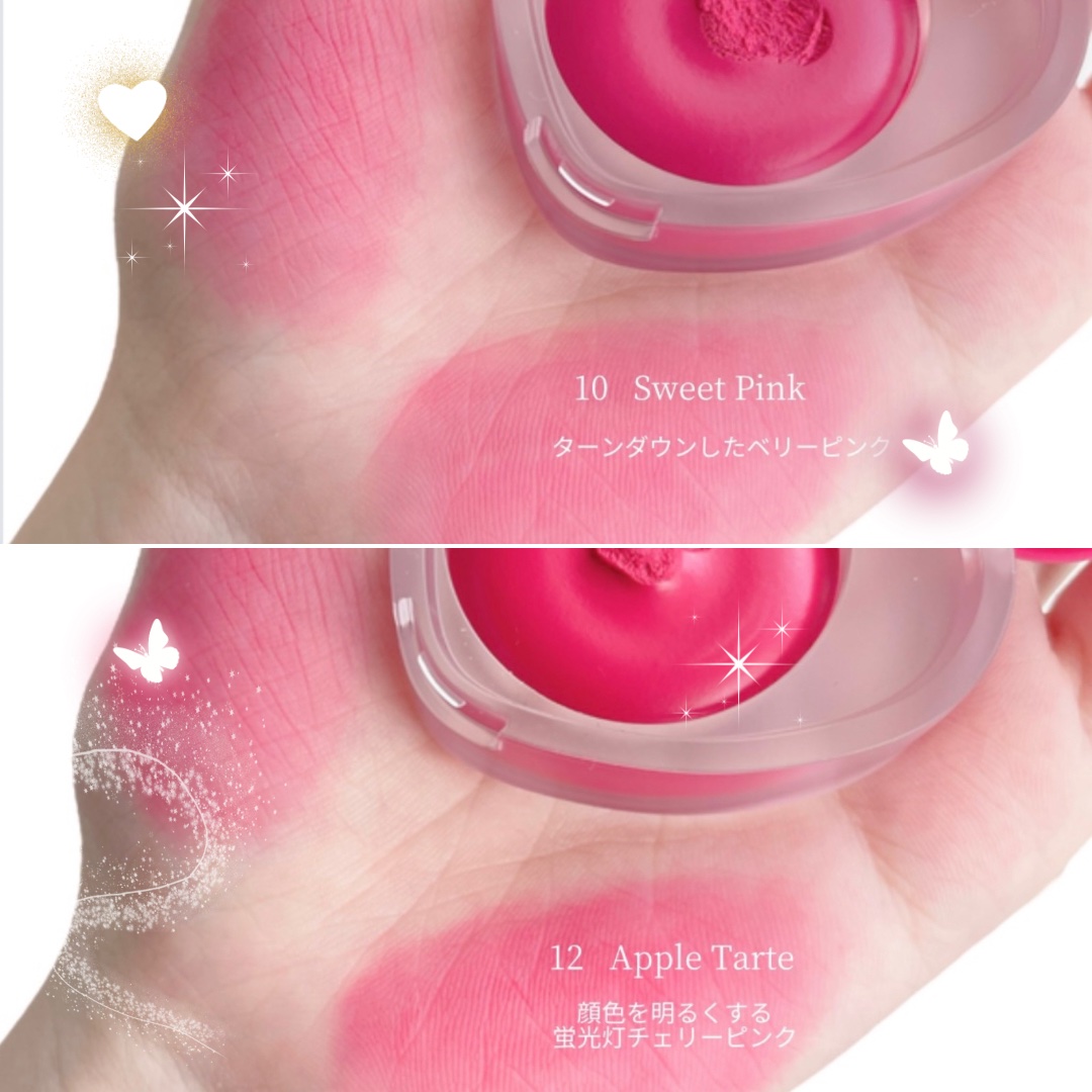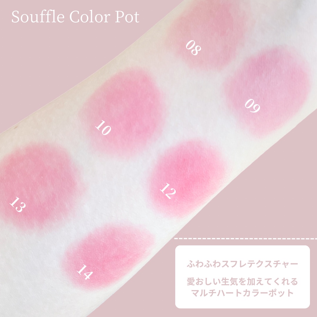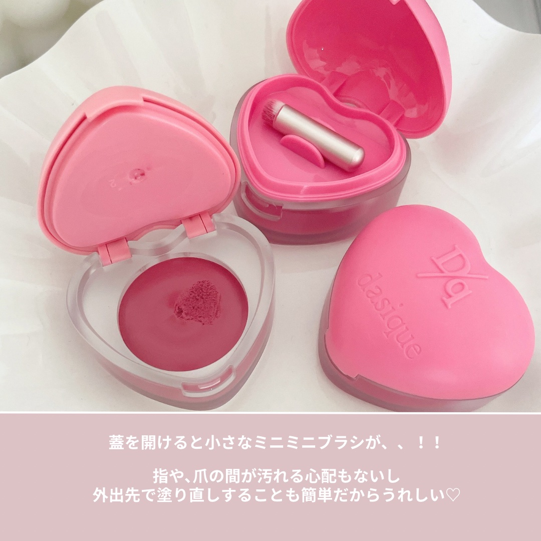 滑らかなテクスチャーで軽さのあるスフレが詰まった コロンとキュートなハート型ポット。 指でもブラシでもスポンジでも簡単にほわっとグラデーションが作れて 塗り広げるとサラッとした仕上がりでムラにもなりにくい🫶 単体でも仕込みチーク&リップとしても、違う色を重ねても◎