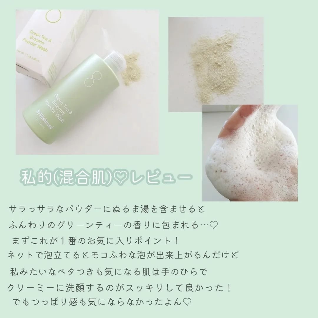 緑茶でいたわる肌 ♡緑茶パウダーとパパイン酵素配合(全て整肌成分) 敏感肌のための角質除去 ♡香ばしい緑茶の香り 洗顔から角質ケアまで量を変えて使えます◎ 泡立てネット使えばよりもっちりとしたもこもこ泡で洗うことができます𓂅