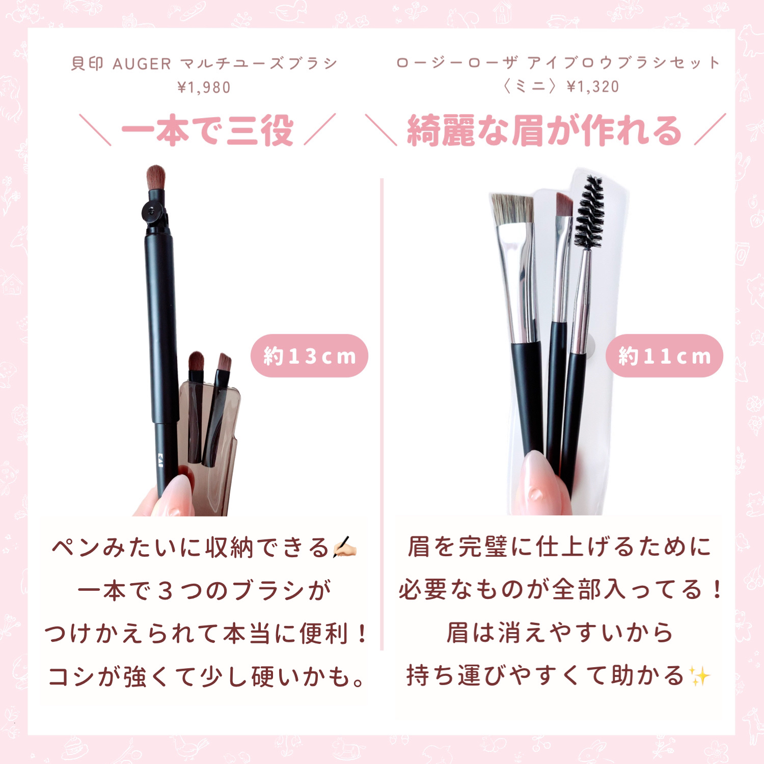 【欠かせない物】メイクポーチに絶対入れてる♡ROSYROSA・アイブロウブラシセット〈ミニ〉¥1,320(税込)・ファイバーアイシャドウブラシセット¥594(税込)✼••┈┈••✼••┈┈••✼••┈┈••✼••┈┈••✼・アイブロウブラシセ...