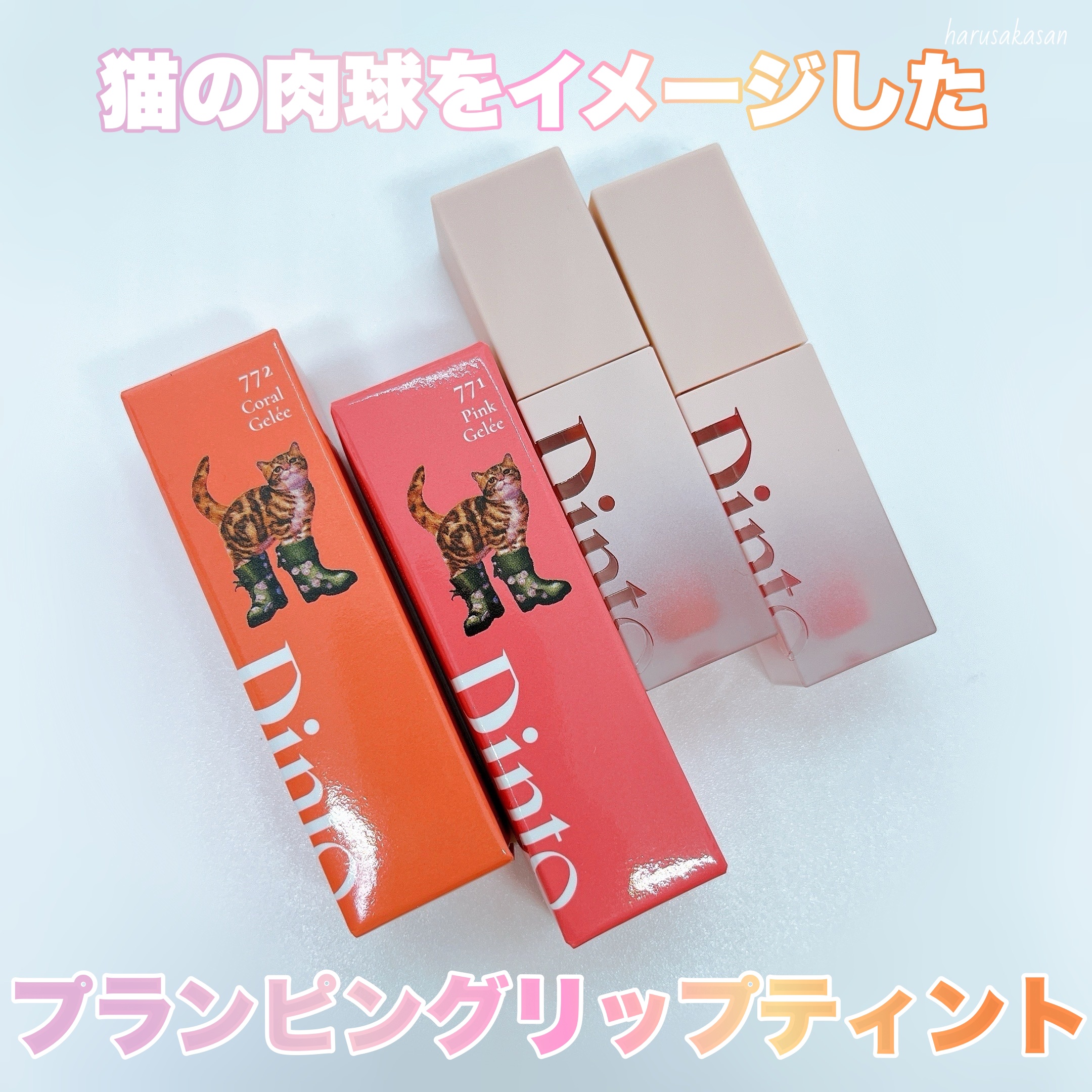 猫の肉球を表現したティントリップ◡̈ 771 ピンクジュレ 猫のぷりっとするピンクゼリーのカラー ほんのり黄みを感じるピンクカラーです。 ゼリーのようにぷっくりとしたツヤと水分たっぷりの唇を演出してくれるリップです。