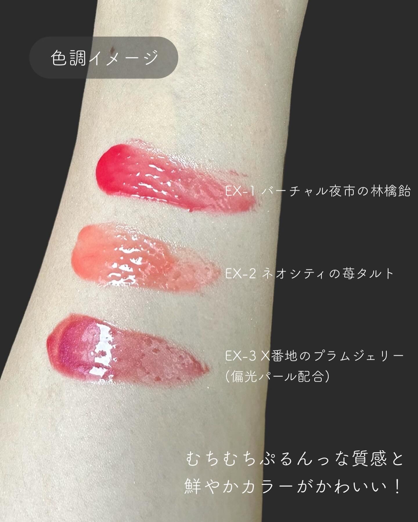 今回の限定コレクションは「超艶 未来感✕レトロカラー」がテーマ!このバーチャルリップバームもレトロ可愛いカラバリと近未来的超艶「NEO艶」な仕上がりが特徴! 柔らかな水あめのようにとろけるバームがピタッと密着。高いツヤ感が出るワックス系処方が採用されていて、重ねても透明感のあるちゅるんとした光沢感がすごい♡ 色とツヤを抱え込んだ透明感のある肉厚な仕上がりでむっちりちゅるちゅるッ!これが近未来的超艶「NEO艶」かっ!