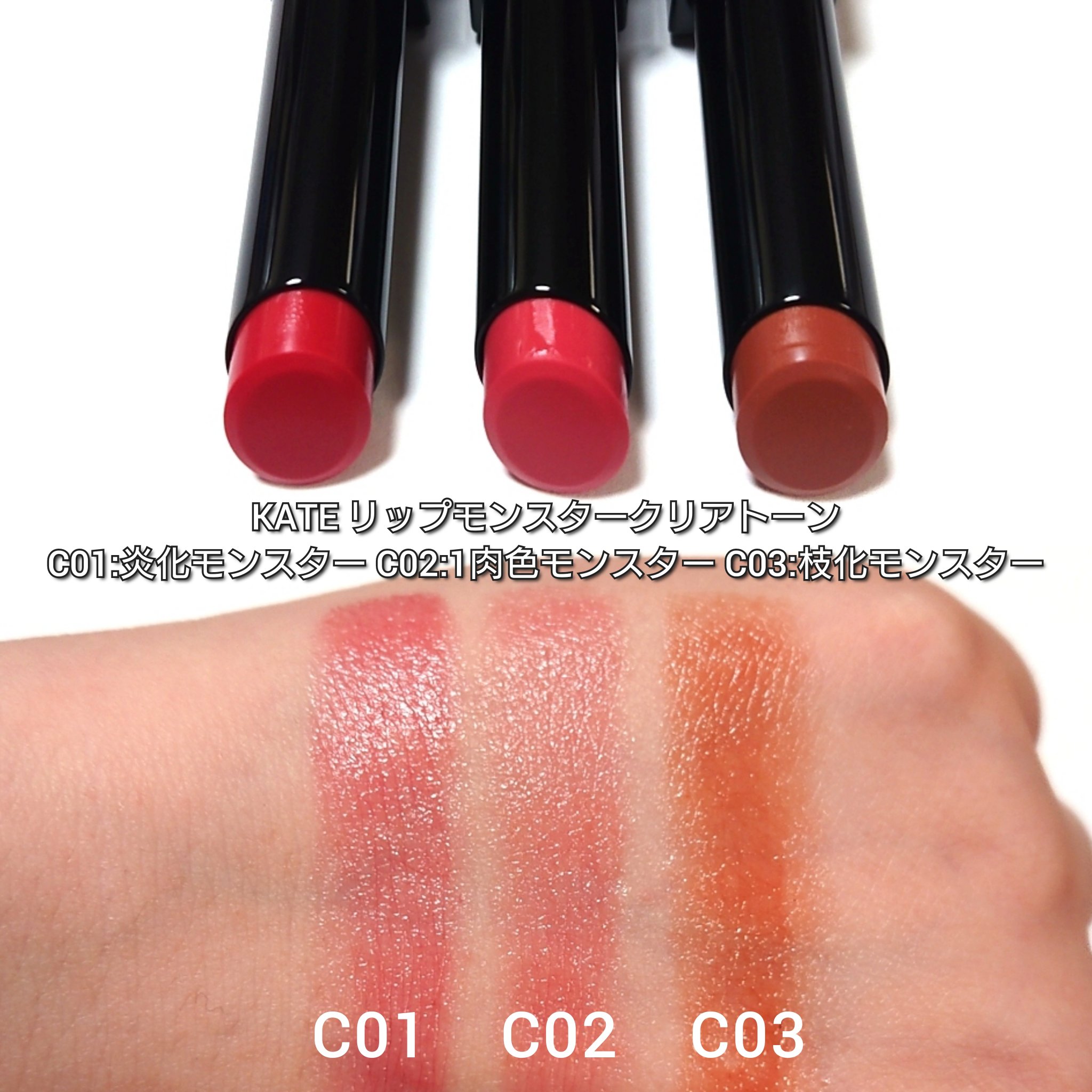 ◯KATEリップモンスタークリアトーンC02 肉色モンスターシアーなスモーキーピンク系💕『発色を抑えたなじみ発色カラーが唇の色と同化。長時間色持続で、落ちにくい。』♡全3色♡保湿(←個人的にはめちゃくちゃ保湿されてる感じというより、リプモンと...