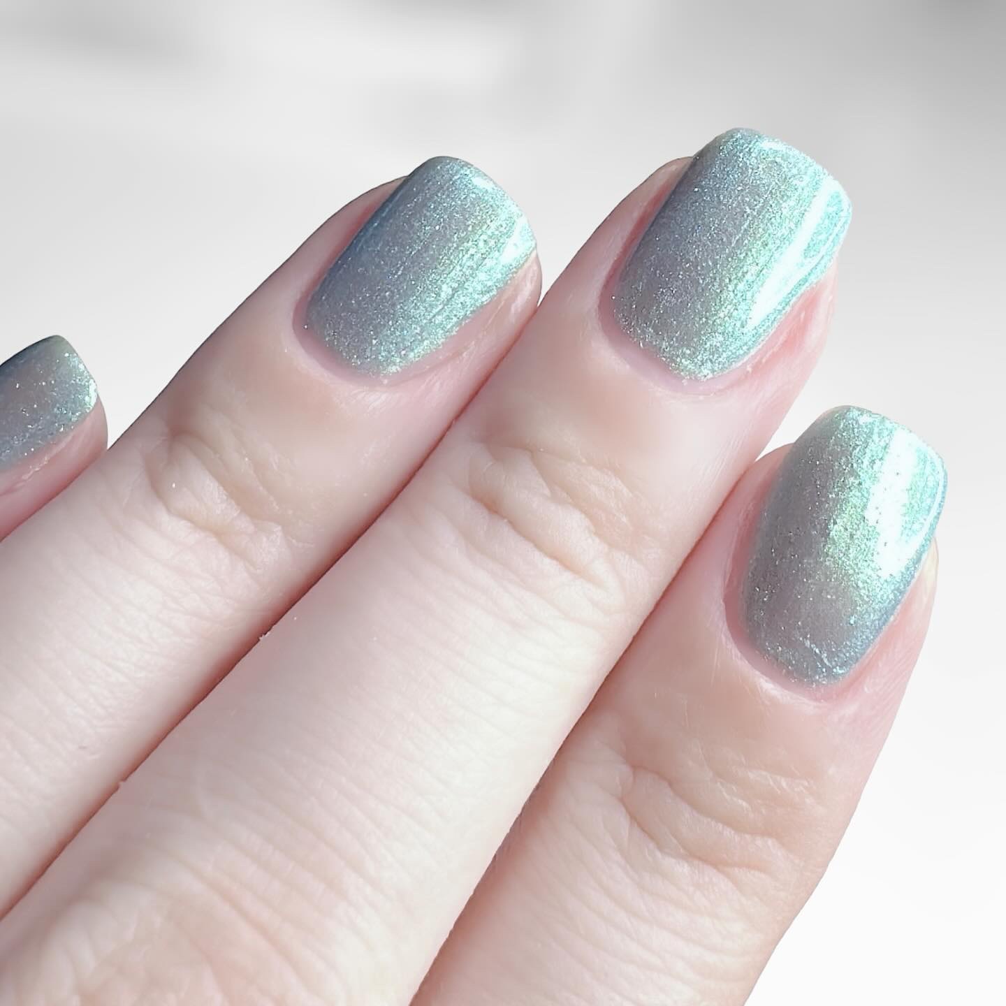 塗っている瞬間から色が変化する、ブルーにもグリーンにも見える不思議で高貴なカラー。眺めていると吸い込まれ、溺れてしまいそうになる輝きを爪に。 冬の森とみずうみと星空 溺れてしまいそうになる輝きを爪に。 再販中だよ!とお知らせしたかったので💦