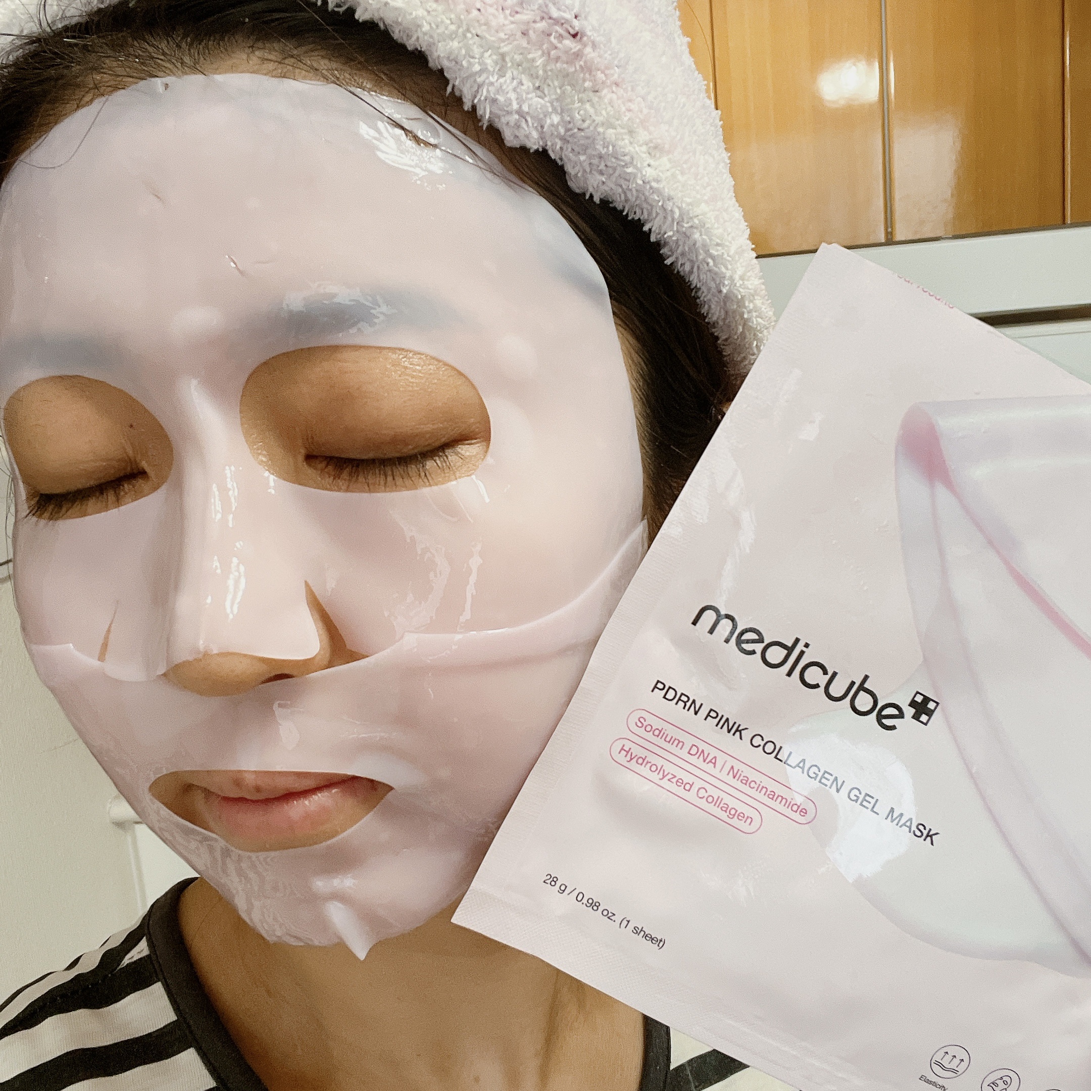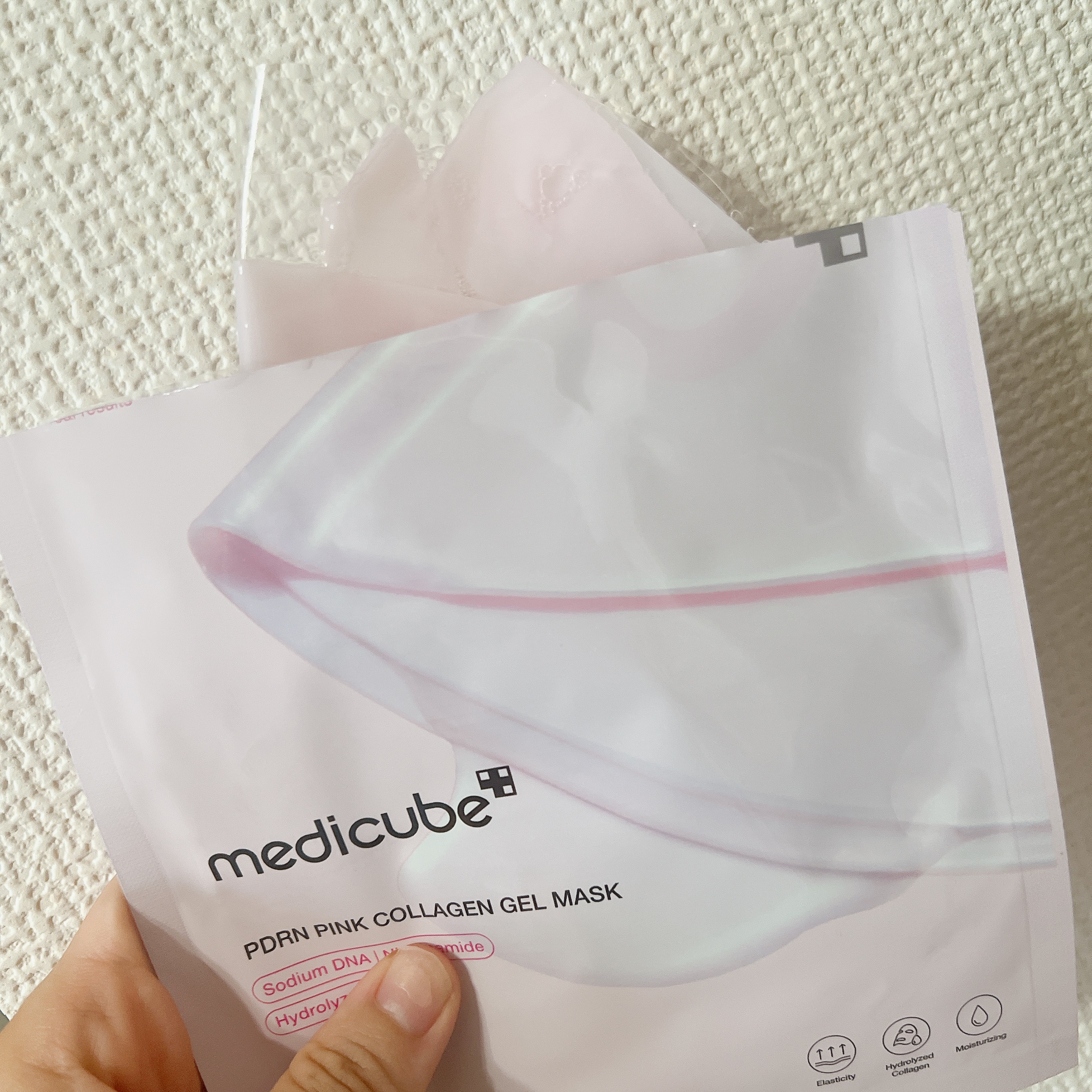 肌が若返るmedicubeのピンク メディキューブで今大人気のピンクのアンプルとアンプル好きな人は絶対合わせて使って欲しいコラーゲンゲルマスク🌷🩰 食べる美容液とも呼ばれるサーモンPDRN DNAに近い成分でコラーゲンの合成をサポートキレイなピンク色はビタミンB12の本来の色なの! マスクはとにかくぷるっぷる...!! 時間が経つとどんどん透けてくる面白い構造剥がした時に小さいのが3つ出てくるんだけどそれはほうれい線や眉間に使えるよ🙆🏻♀️無駄なし!