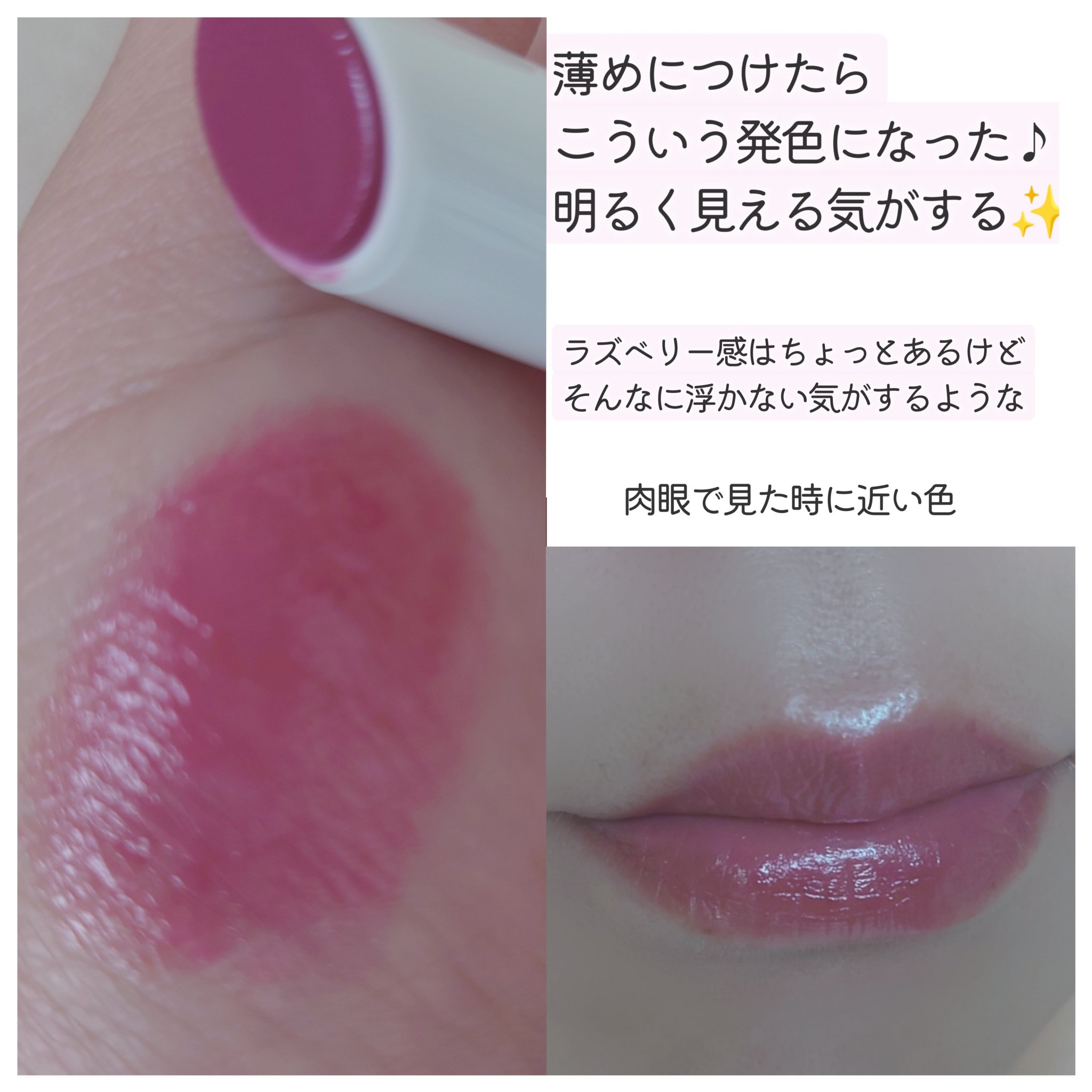 プランパー効果で、縦じわカバー&ボリュームUPしたむっちりぷるぷる唇に。 スーッと清涼感のある使い心地。シロップのようなちゅるっとした艶が持続。 リップクリームいらずの保湿効果。艶が綺麗でラズベリーケーキは青みピンク?赤紫っぽくて少し青みよりな感じ。