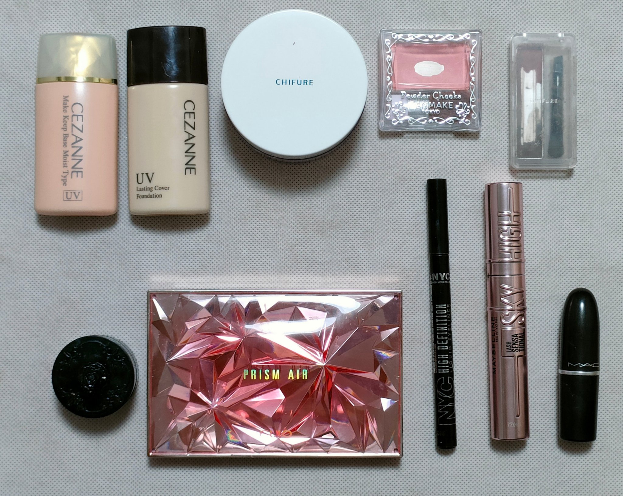 アリィー ニュアンスチェンジUV ジェル RSを、顔全体にまんべんなく塗ります。 RMK RMK ジェルクリーミィファンデーション 103を、顔全体にまんべんなく塗ります。 ジョンソンベビー ジョンソン ベビーパウダーを、顔全体にまんべんなく軽くはたきます。 THE BODY SHOP bronze shade warm glowを、両頬に塗ります。 KATE リフレクトミラーアイズ BR-1の締め色を、眉毛全体にまんべんなく塗ります。 URGLAM UR GLAMBLOOMING EYE COLOR PALETTE 01を、使用しました。 ちふれ リキッド アイライナー 筆ペンタイプ BK30 ブラックを、塗ります。 CEZANNE エアリーカールマスカラを、まつ毛全体にまんべんなく塗ります。 MAYBELLINE NEW YORK コロッサルボリュームエクスプレスを、まつ毛全体にまんべんなく塗ります。 MAYBELLINE NEW YORK SPステイ マットインク 135を、唇全体にまんべんなく塗ります。