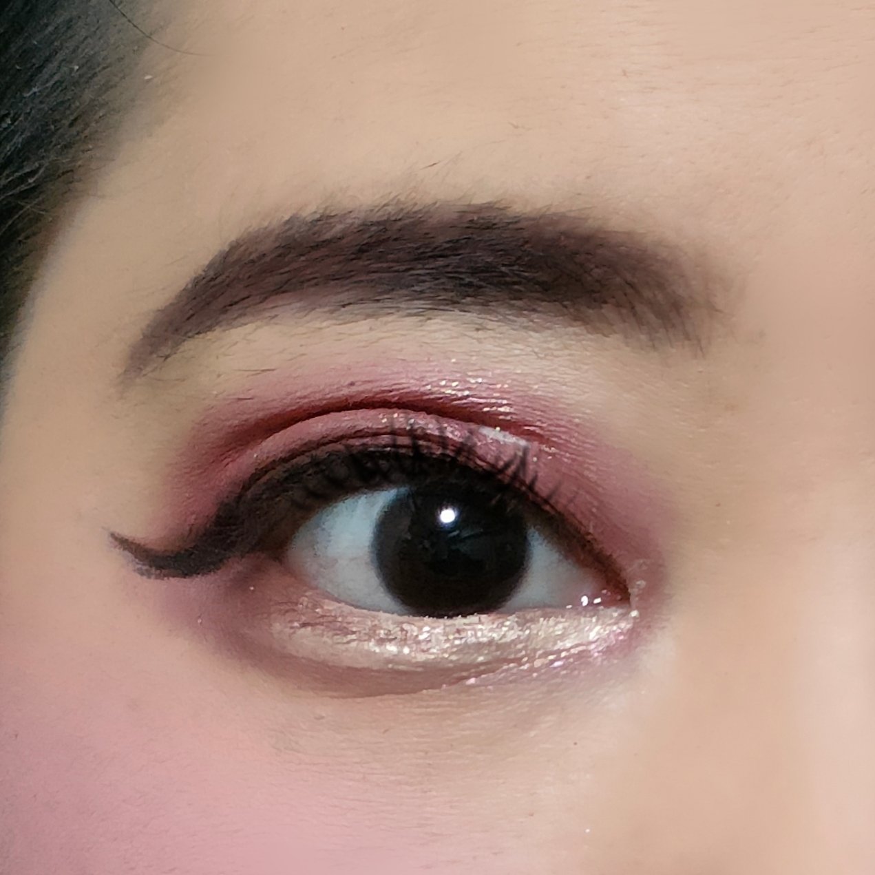 アイシャドウパレットは、URGLAM UR GLAMBLOOMING EYE COLOR PALETTE 02を、使用しました。 マスカラは、MAYBELLINE NEW YORK コロッサルボリュームエクスプレスを、まつ毛全体にまんべんなく塗ります。 リップは、wet 'n' wild MegaLast Lip Colorを、唇全体にまんべんなく塗ります。