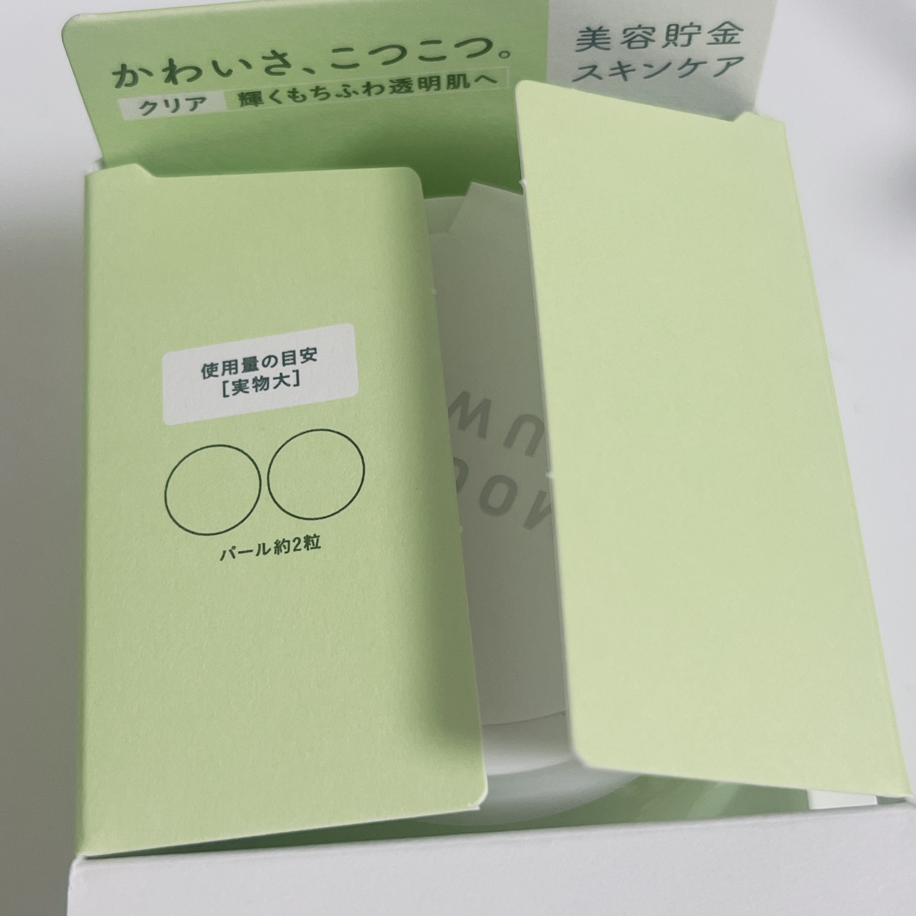 - <80g> 水、BG、グリセリン、ソルビトール、DPG、グルタチオン、シロツメクサエキス、グルコシルセラミド、サッカロミセス/コメ発酵液、乳酸桿菌/ハス種子発酵液、カニナバラ果実エキス、ローズマリー葉エキス、テトラエチルヘキサン酸ペンタエリスリチル、アクリル酸Naグラフトデンプン、カンテン、水添レシチン、コレステロール、イノシトール、ダイマージリノール酸(フィトステリル/イソステアリル/セチル/ステアリル/ベヘニル)、プロパンジオール、α-グルカン、EDTA-2Na、メチルパラベン、香料
