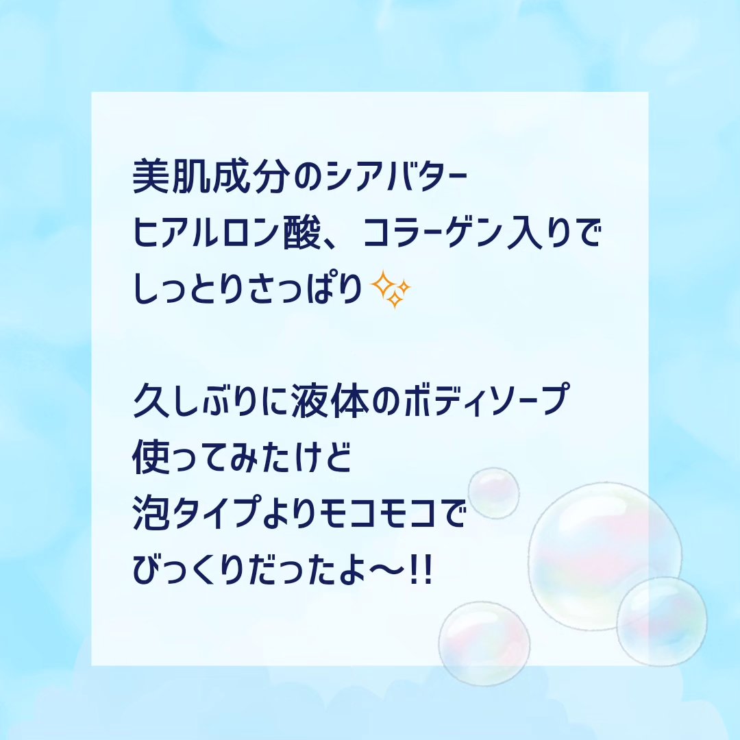 | もっちもっちの泡で体を洗った後に洗い流すだけでしっとりもちもちスベスベ肌が♡ | 詳細を見る | |
