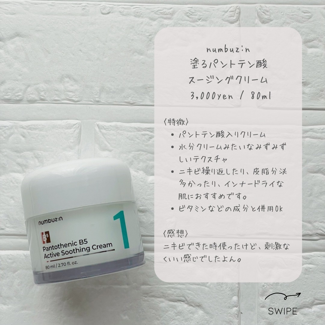 numbuzin 1番 塗るパントテン酸スージングクリーム | 2,750円 |