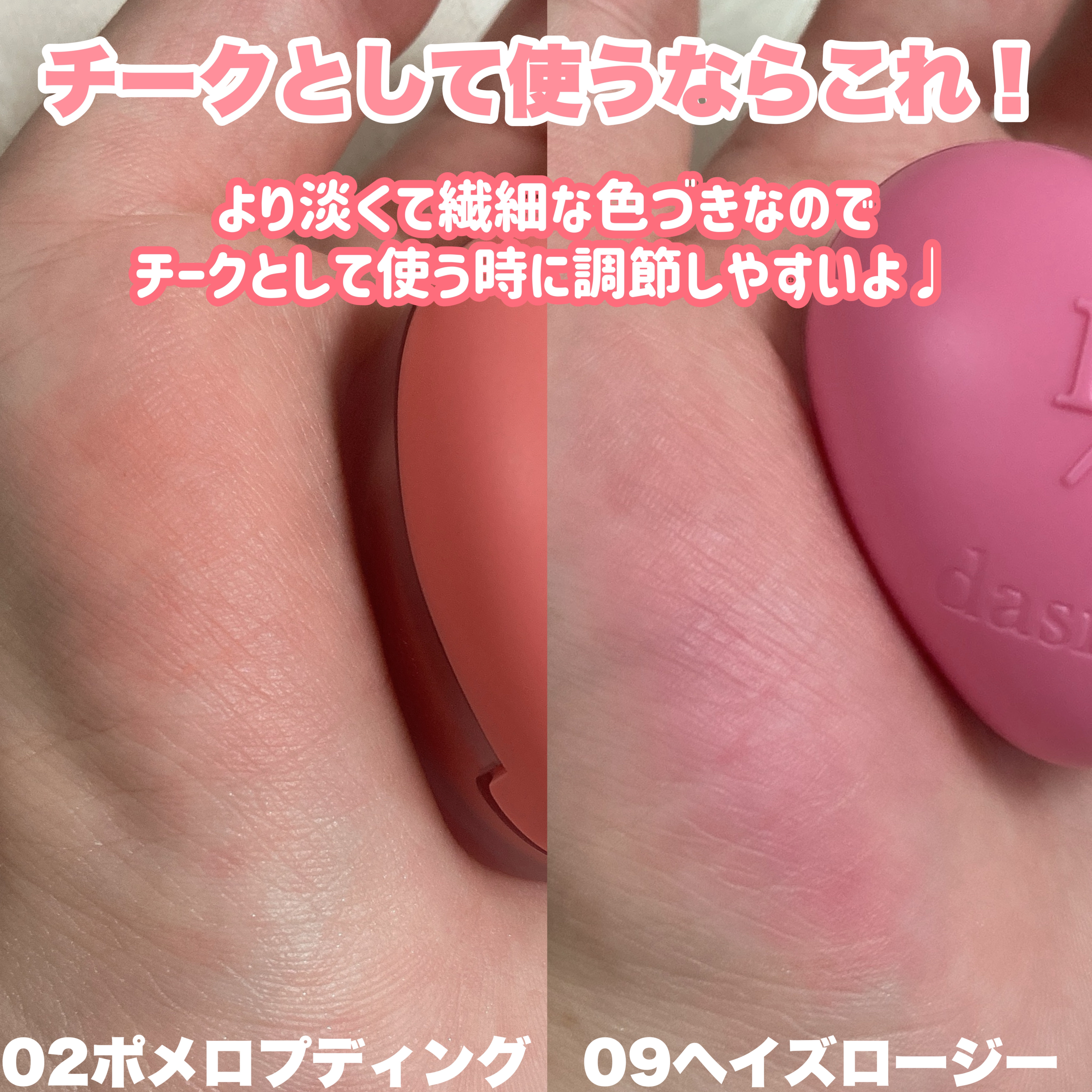 スフレみたいなふわふわなテクスチャーのリップ&チーク。ハート型のマカロンみたいなぷっくりころんとしたパケが可愛すぎて…😍✨ 全14色でどれも可愛くて迷いました… 発色はふんわりで柔らかい仕上がりで肌馴染み◎ リップポット初めて使う方にもおすすめです✨ 是非チェックしてみてくださいね🫶