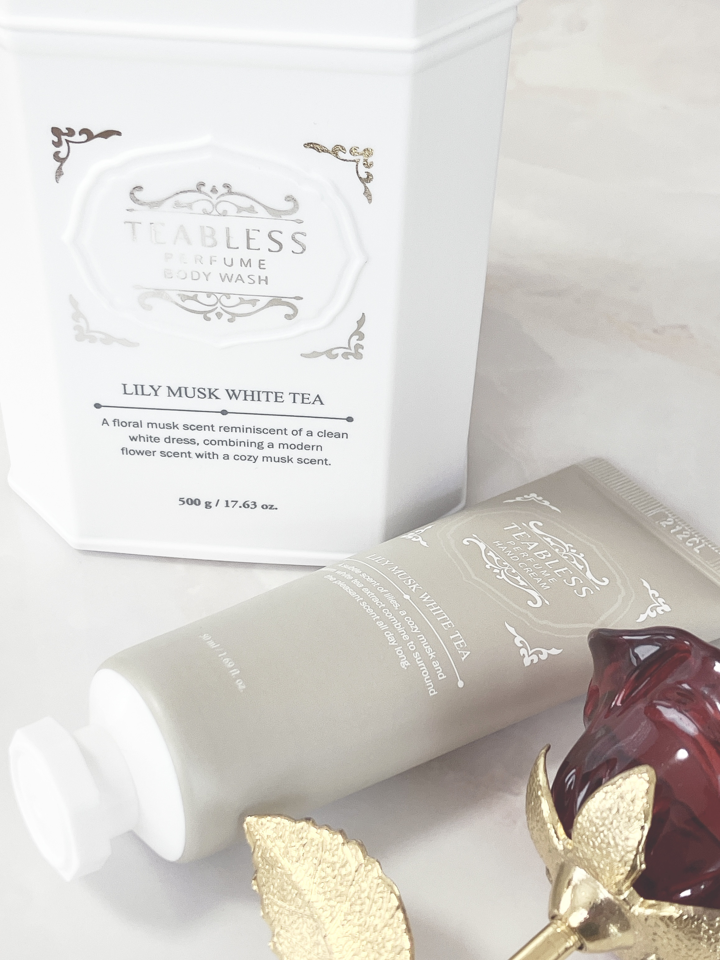 ティーパフュームスキンケア🫖🍂✨ ホワイトティーパフュームボディソープ&ボディローション フローラルムスクの高級感のある香り🤍✨ 白茶原物配合で刺激のないマイルドなスクラブ効果あり🫧 豊富なカテキンを詰め込んだ白茶原物と英国セラミド配合で保湿力◎ 肌と心をリラクシング✨ 肌低刺激テストを完了しており敏感肌さんも安心して使えます ビーガン認証済み