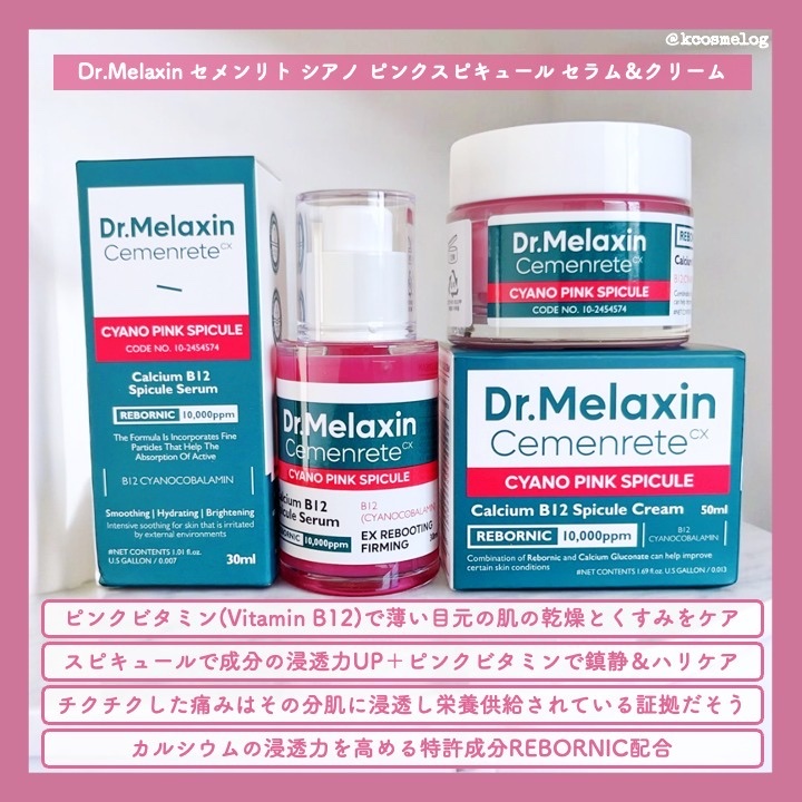 Dr.Melaxinセメンリトシアノピンクスピキュールセラムセメンリトシアノピンクスピキュールクリーム“ピンクビタミン”(ビタミンB12)由来の、自然なピンク色のセラム・クリーム。肌にハリを与えて、ふっくらとした印象に導いてくれます。スピキュ...