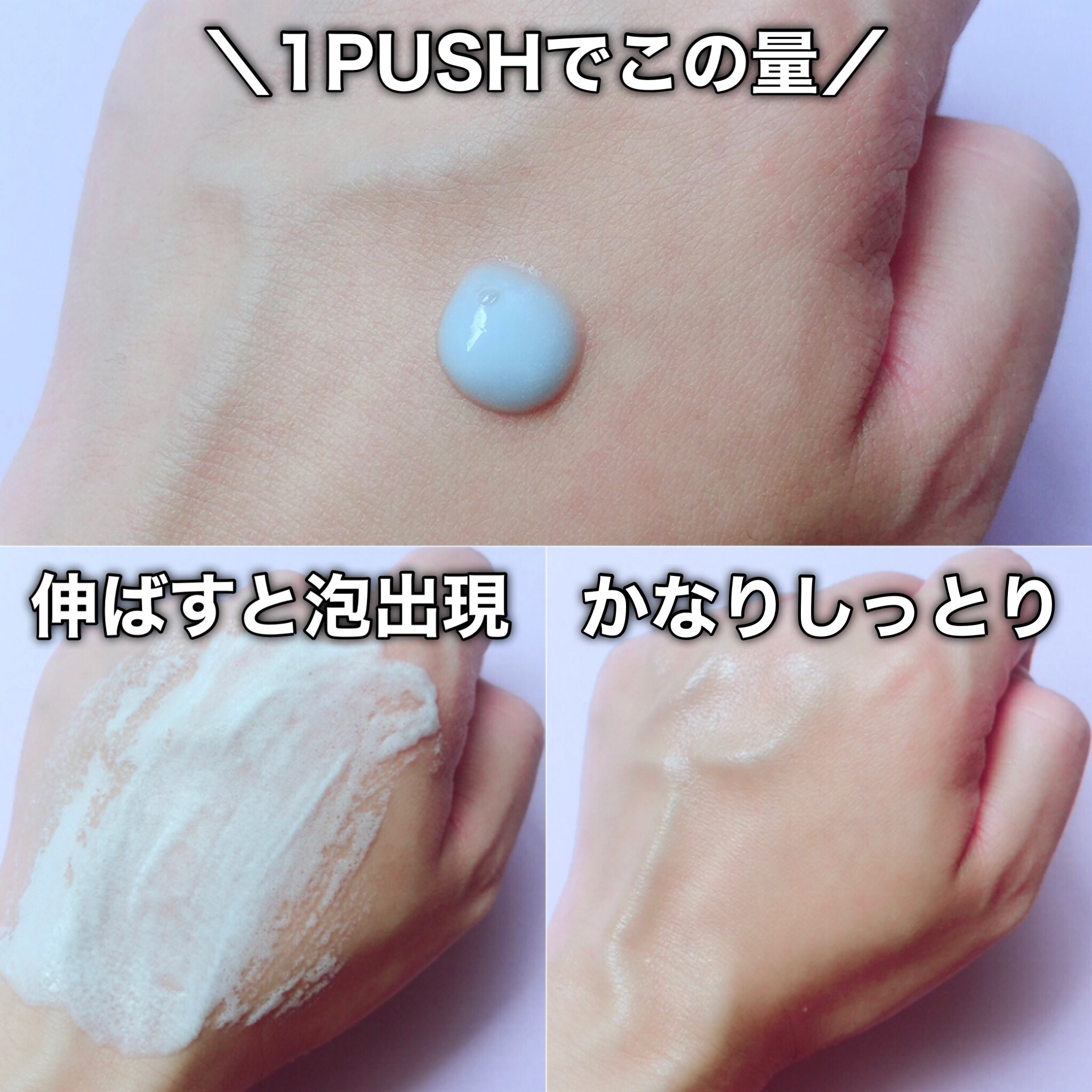 | なめらかなクリームのようなテクスチャーですが、 塗り広げて少しすると泡が立つ不思議な使用感! | 詳細を見る |