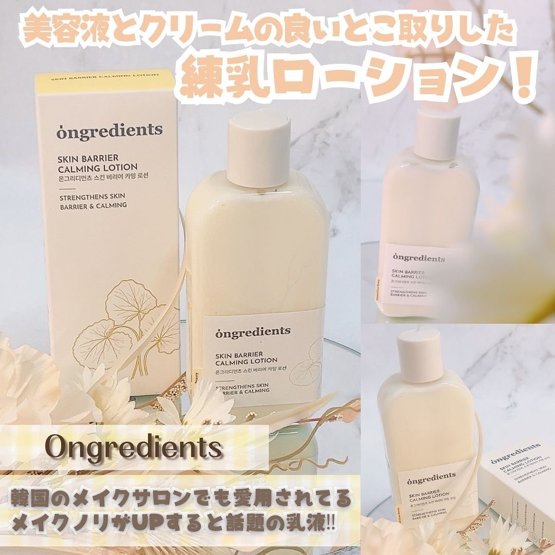 ♡OngredientsSkinBarrierCalmingLotion@ongredientsjp さまのメイクのりが良くなるローションです🩷韓国のメイクサロンでメイク前のスキンケアに採用された実力派乳液らしくSNSでもメイク前に塗ればツヤ...