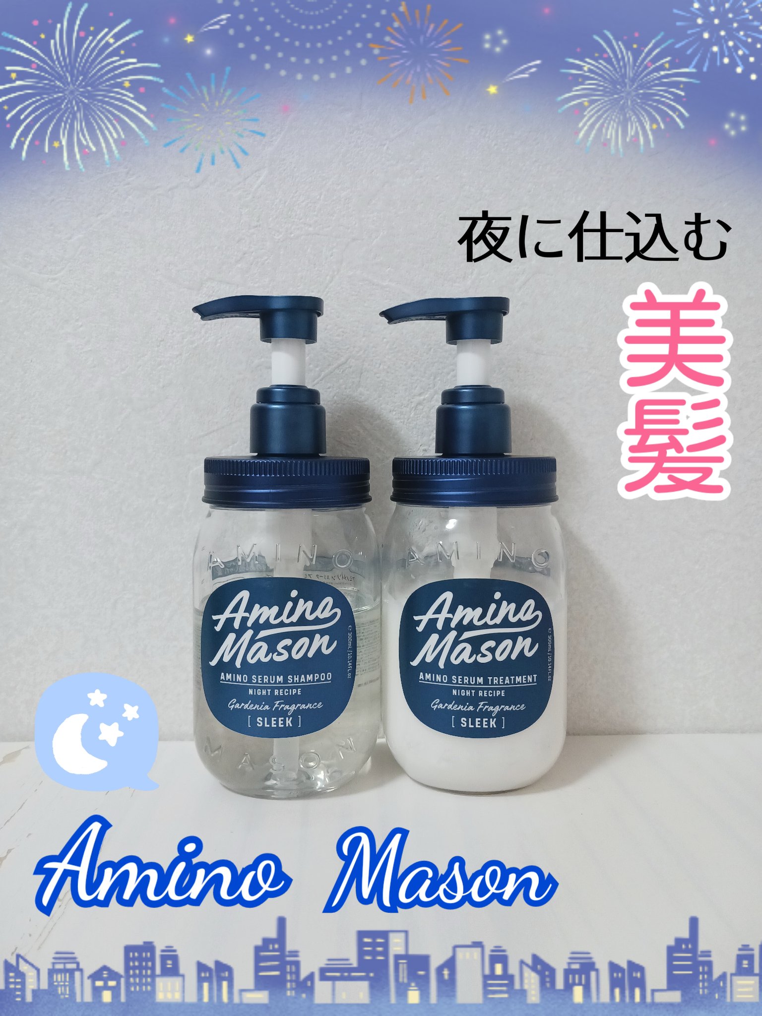 - 夜の寝ぐせ・うねりにアプローチするナイトレシピ、「スリーク」シリーズのシャンプー&トリートメント。スーパーアミノ酸*1×うねり抑制ケラチン*2配合で、睡眠中の摩擦や乾燥によるダメージを補修する新処方。アミノ酸の泡で優しく汚れを落とし、濃厚*3なトリートメントで水分と油分を与えてラッピングするように潤いをコート!寝ぐせ・乾燥・パサつきをケアして、翌朝毛先までまとまりのある扱いやすい髪へと導きます。月夜に放つ「クチナシ」の香り。 *1 タウリン、リシンHCl、グルタミン酸、グリシン、ロイシン、ヒスチジンHCl、セリン、バリン、アスパラギン酸Na、トレオニン、アラニン、イソロイシン、フェニルアラニン、アルギニン、プロリン、チロシン、加水分解ケラチン(羊毛)、白金(全て保湿) *2 ステアルジモニウムヒドロキシプロピル加水分解ケラチン(羊毛)(保湿) *3 テクスチャーのこと