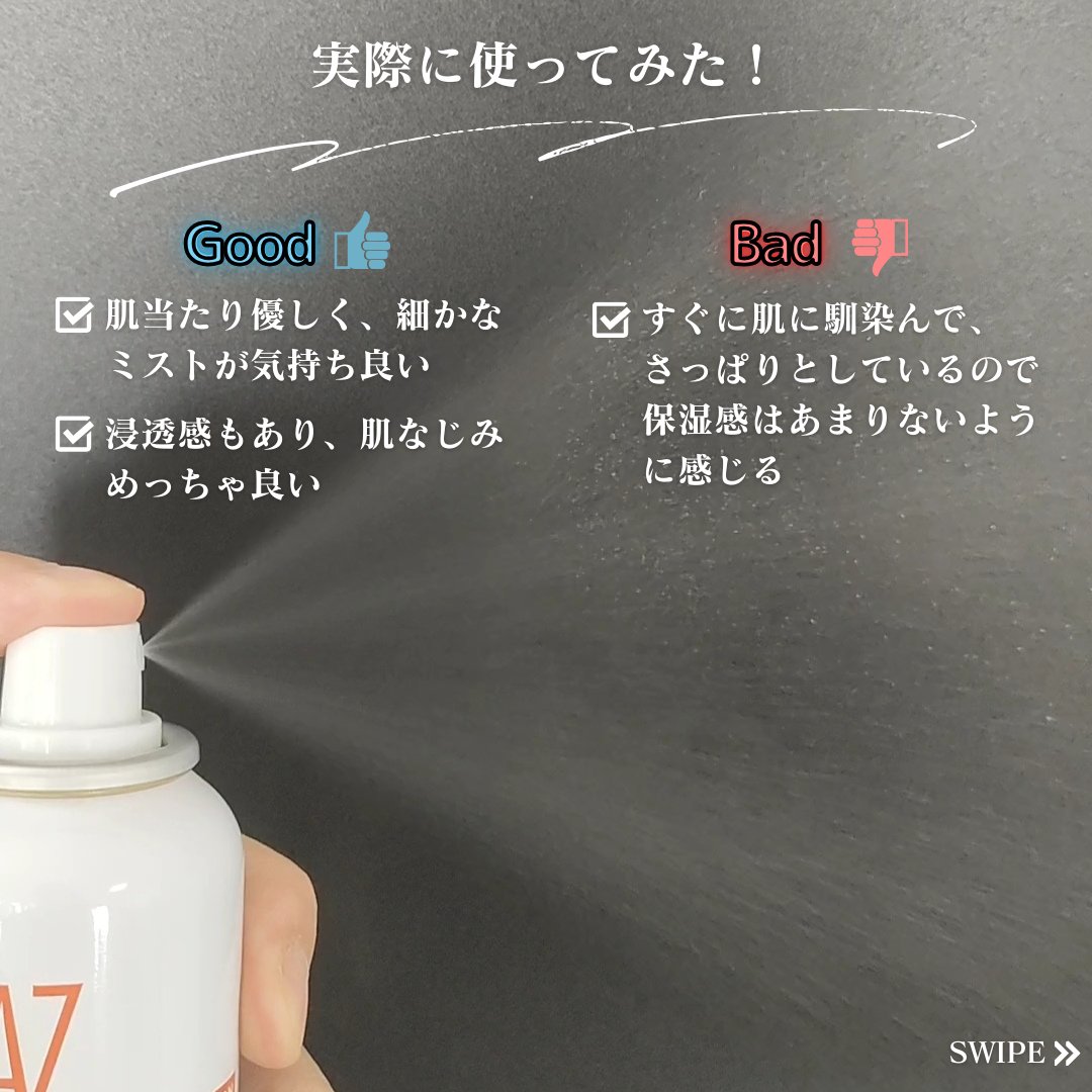 | スプレーを逆さにしても使えるため なかなか届きにくい背中なども シューっと手軽に保湿できるのも 良いなと思いました☺️ | 詳細を見る | ||