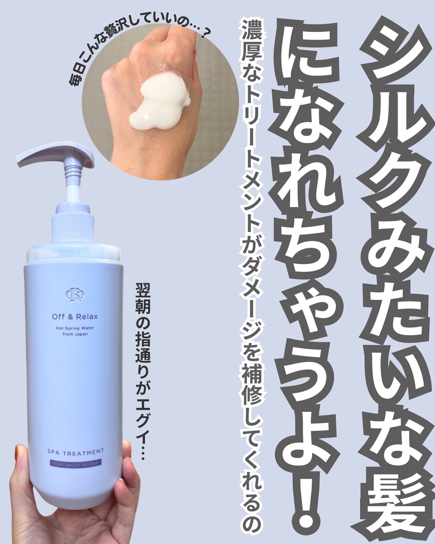 Off&Relax様からご提供いただきました!❄︎••••❄︎••••❄︎Off&RelaxORスパ・シャンプーシルキーナイトリペア460ml¥1,760(参考価格)ORスパ・ヘアトリートメントシルキーナイトリペア460ml¥1,760(参考...