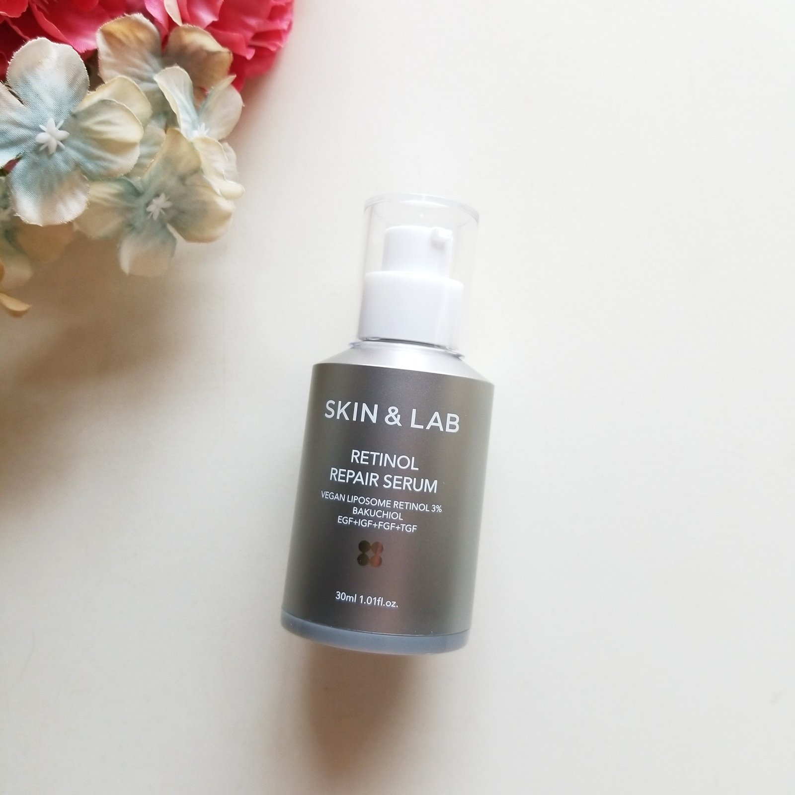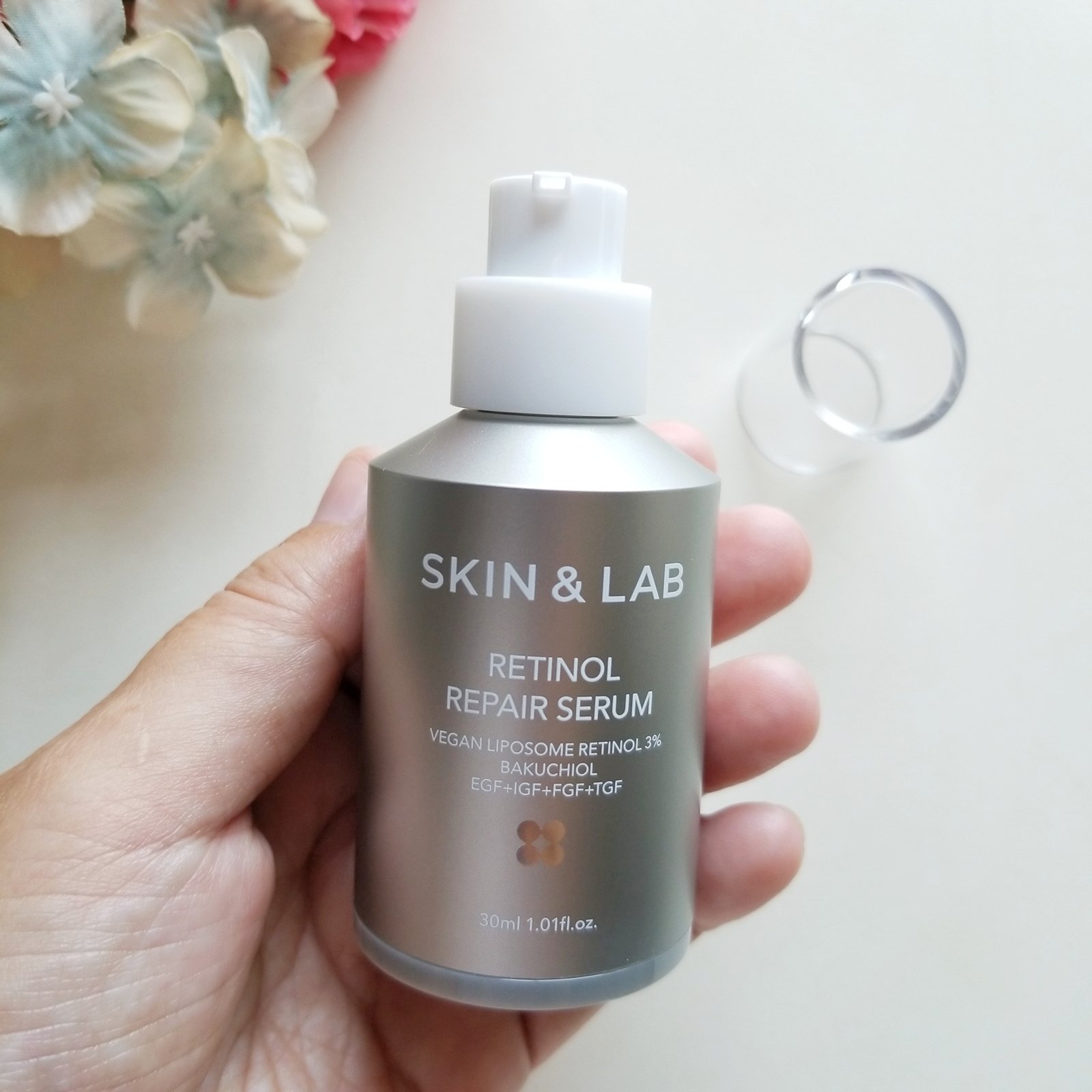 植物性で刺激を減らしたヴィーガンリポソームレチノール。3月に発売したSKIN&LABの新商品! 毛穴より238倍小さいヴィーガンリポソームレチノールが3%配合され、メラニンの生成を抑えしみそばかすを防ぎ、毛穴ケアや肌ハリをアップしてくれるセラム 柔らかいテクスチャーのクリーム様のセラム。すーっと伸びて肌馴染みがよく、ベタつかない使用感で心地よいです。