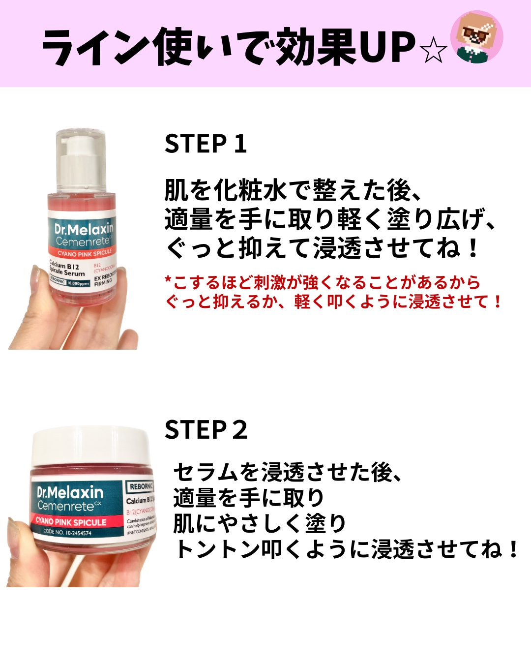 Dr.Melaxinセメンリトシアノピンクスピキュールセラムセメンリトシアノピンクスピキュールクリーム“ピンクビタミン”(ビタミンB12)由来の、自然なピンク色のセラム・クリーム。肌にハリを与えて、ふっくらとした印象に導いてくれます。スピキュ...