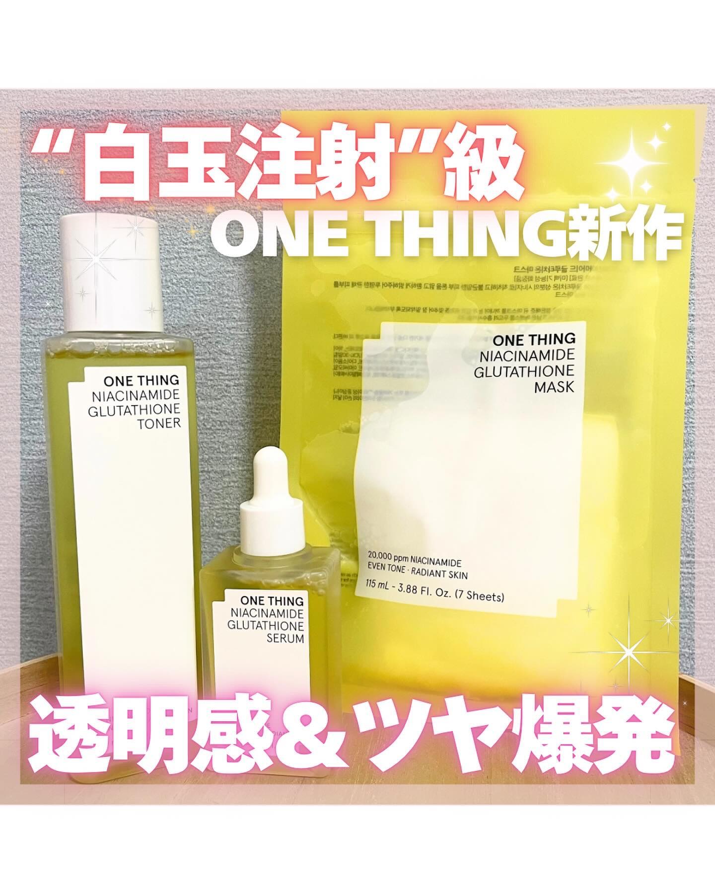 ツヤ・透明感が爆誕するスキンケア、onethingのパックとセラムをお試しさせて頂きました😉 ナイアシンアミドとグルタチオンの体系的な組み合わせにより、ブライトニング効果を得ることが出来るパック✨️ 低刺激でナイアシンアミド配合なので敏感肌さんも○パックはシートが少し薄く感じたけどその分密着力が高い!