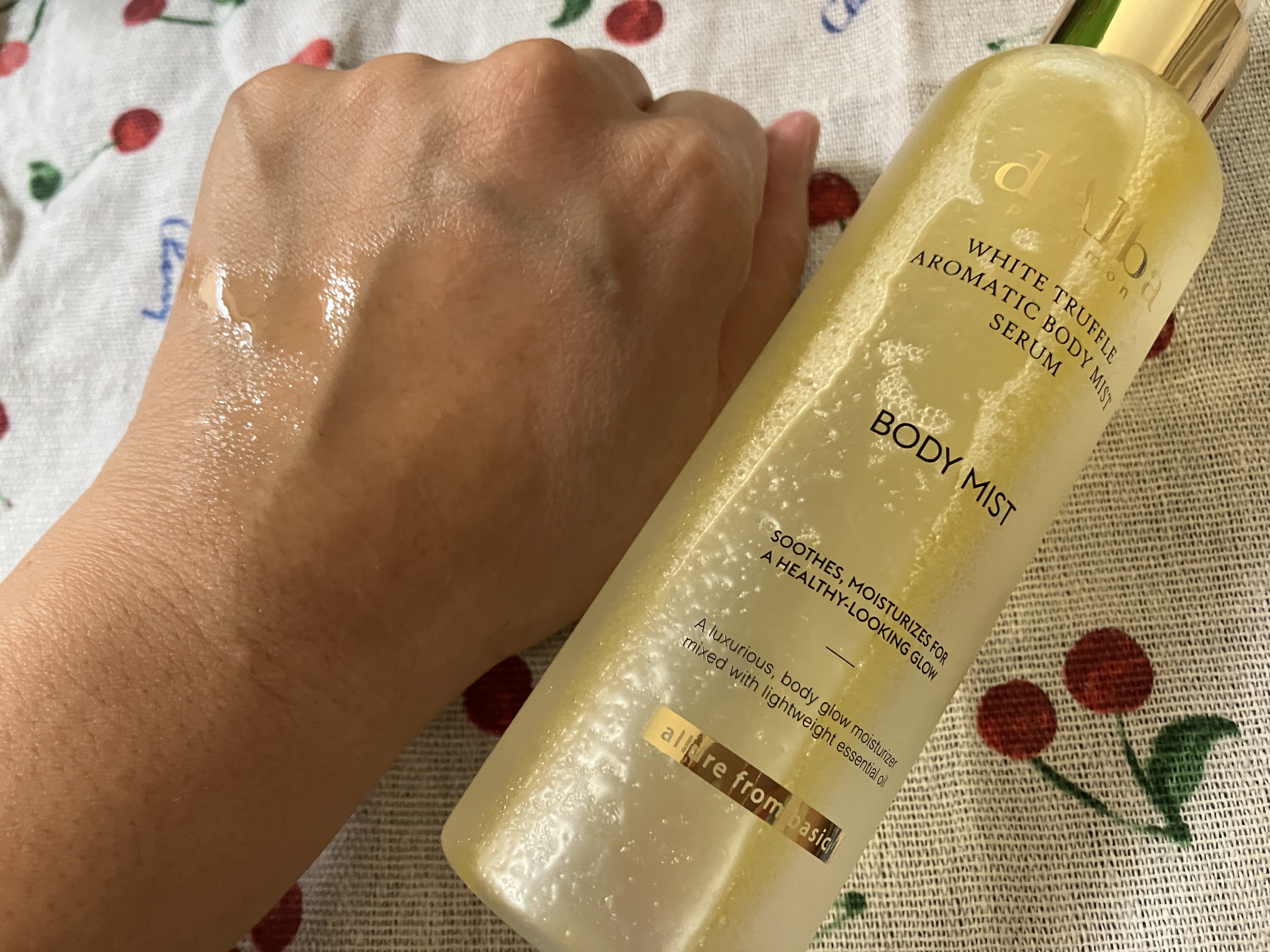 ダルバホワイトトリュフアロマティックボディミストセラムセラムとオイルが絶妙なバランスで配合されていて、しっとりするのにべたつきません✨肌にすっとなじんで、なめらかさとふっくら感を感じました🫶🏻キー成分はイタリア産ホワイトトリュフ(※)とトコフ...