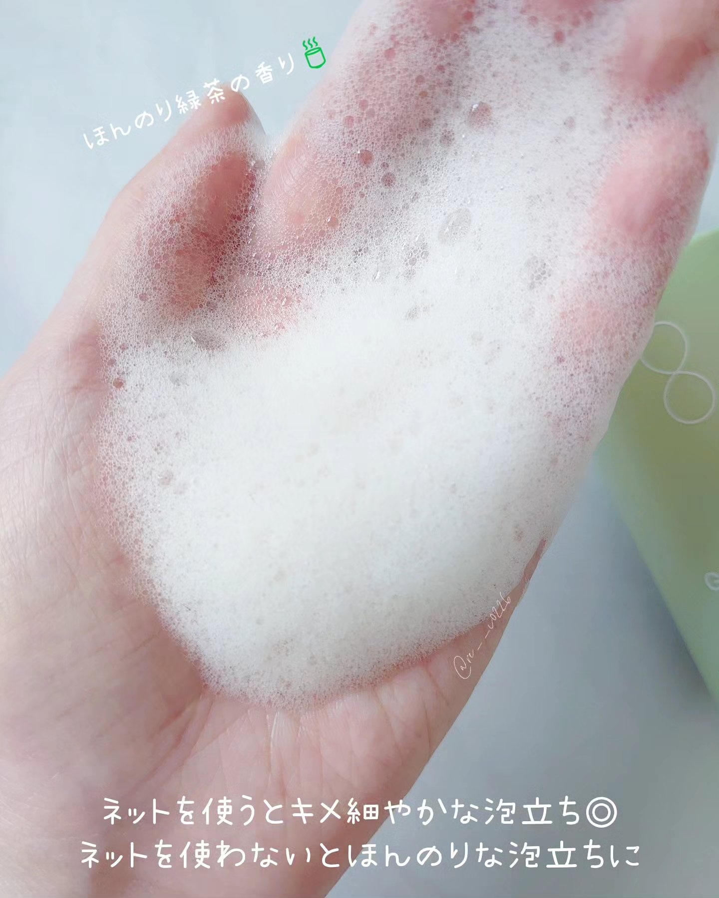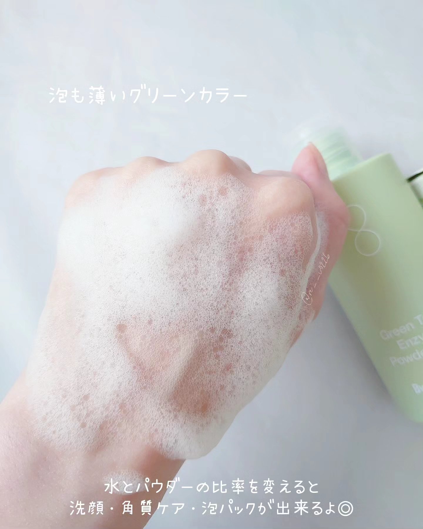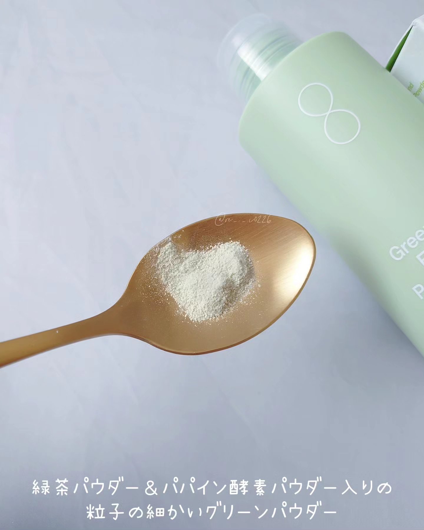 緑茶でいたわる肌 ♡緑茶パウダーとパパイン酵素配合(全て整肌成分) 敏感肌のための角質除去 ♡香ばしい緑茶の香り 洗顔から角質ケアまで量を変えて使えます◎ 泡立てネット使えばよりもっちりとしたもこもこ泡で洗うことができます𓂅