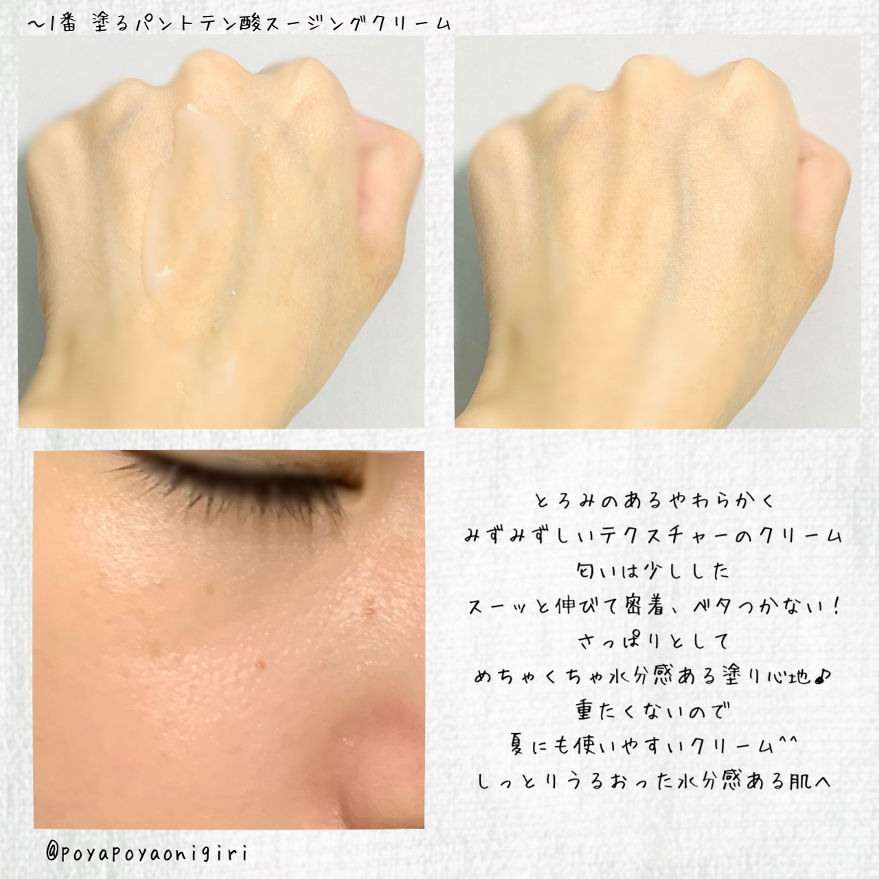 油水分バランスを整えるパントテン酸*配合で皮脂コントロールしてくれるアイテム✨ 水分たっぷりのみずみずしいとろぷるクリームで油分感が少なく、朝晩使いやすいしっとりさっぱりとした使用感がすき✨ 水分うるうる系で乾燥くすみや乾燥による毛穴目立ちを気になりにくくしてくれるのに期待💫
