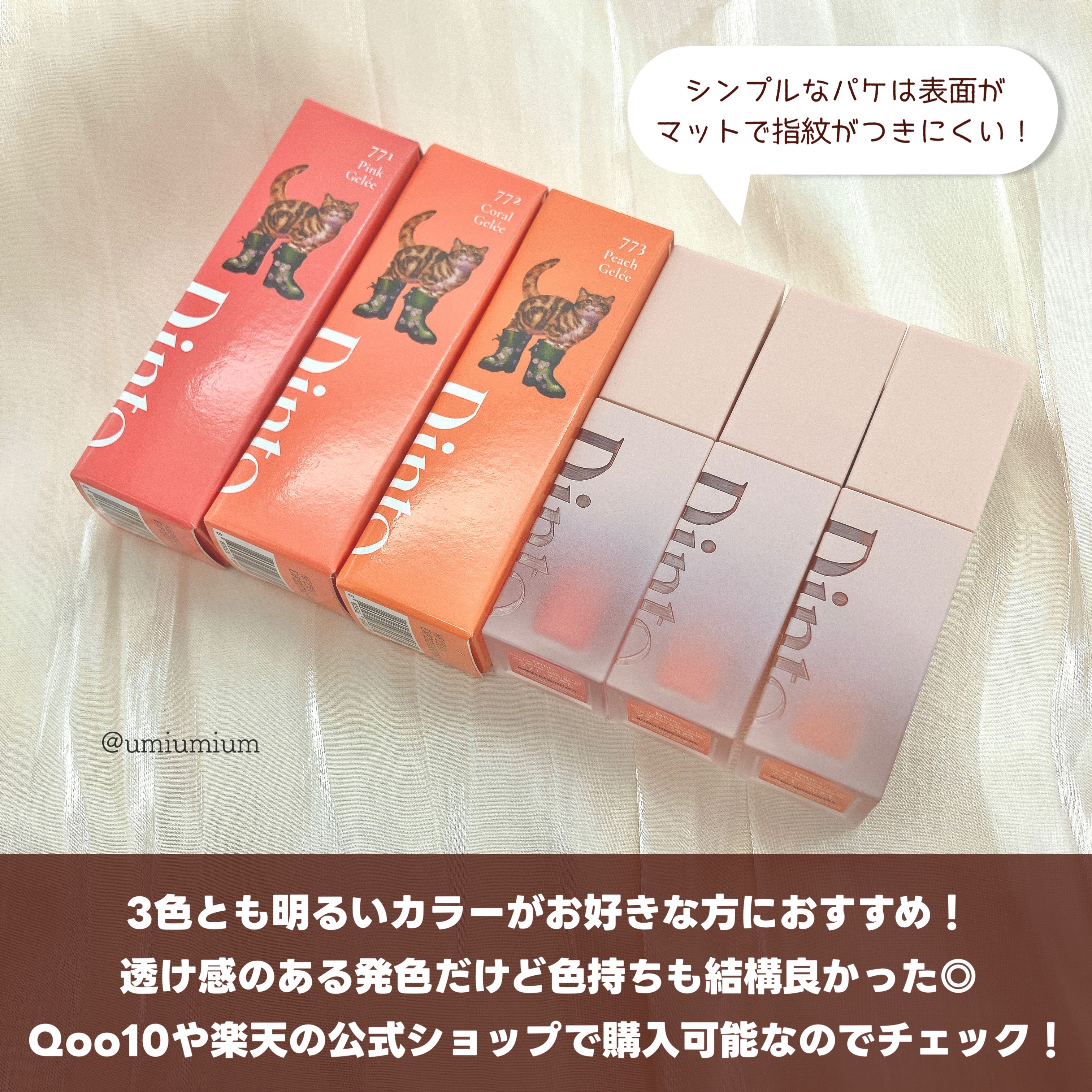 ぷにっ🩷と柔らかく、ふんわり血色感🫶 そんな“猫の肉球”からインスパイアされた可愛過ぎるDintoのティントを全色ご紹介👏✨ トリプルプランピングコンプレックスでマイルドに弾力のあるぷっくりリップを演出。 シャルル・ペローの「長靴をはいた猫」をテーマにしたプランピングティント🐾