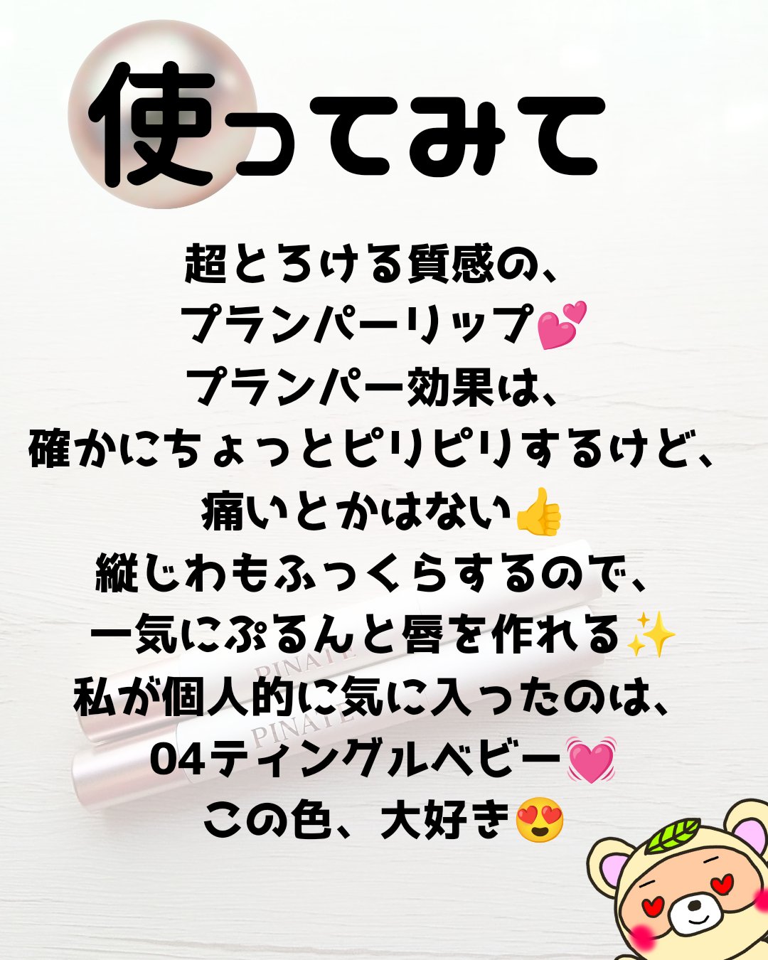 染み込む強力なプランピング効果♥ 上級者レベルのプランピングメルティングリップ発売.ᐟ.ᐟ.ᐟ♪。.:* 唇がうるおってむちっとした感じに♥ 最初は全然ヒリヒリしない〜って余裕かも?と思ってたら塗って少しするともうすごくヒリヒリ感が強くなってきました◎ 個人的に01.02.04が好みの色味です✊🥰 ぜひぜひチェックしてください✨