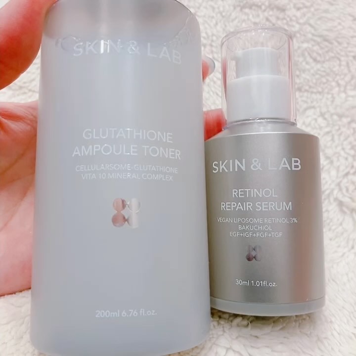 純度99%のグルタチオンと10種のビタミンが配合された化粧水なんだけど、保湿だけじゃなくてくすみケアや抗酸化作用なんかも期待できる成分が入ってるから、もはや美容液なのでは?というレベル。 低刺激なのに高品質なレチノール美容液。光や熱などに弱いレチノールを保護するためのエアレスボトルが頼もしい。 使いやすくて気に入ってます✌🏻