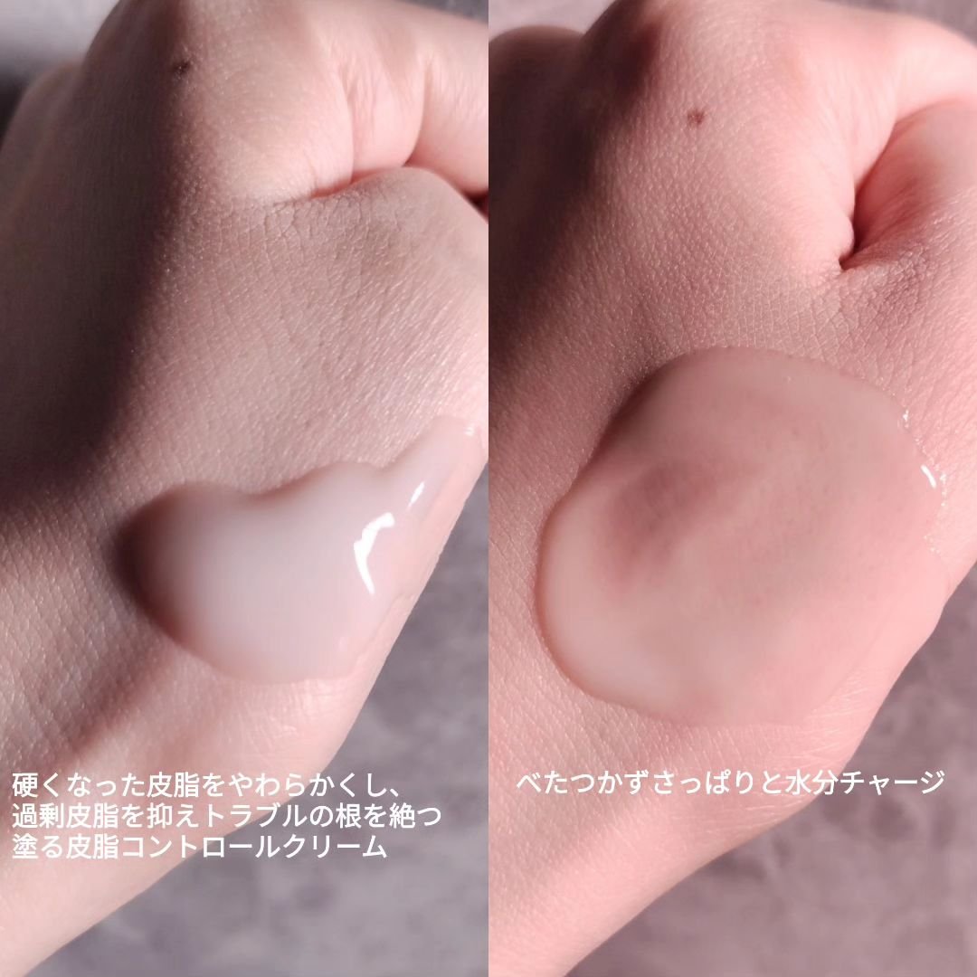 油水分バランスを整えるパントテン酸*配合で皮脂コントロールしてくれるアイテム✨ 水分たっぷりのみずみずしいとろぷるクリームで油分感が少なく、朝晩使いやすいしっとりさっぱりとした使用感がすき✨ 水分うるうる系で乾燥くすみや乾燥による毛穴目立ちを気になりにくくしてくれるのに期待💫