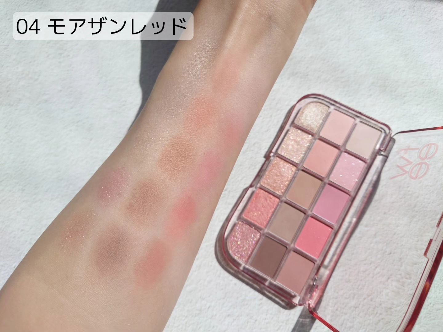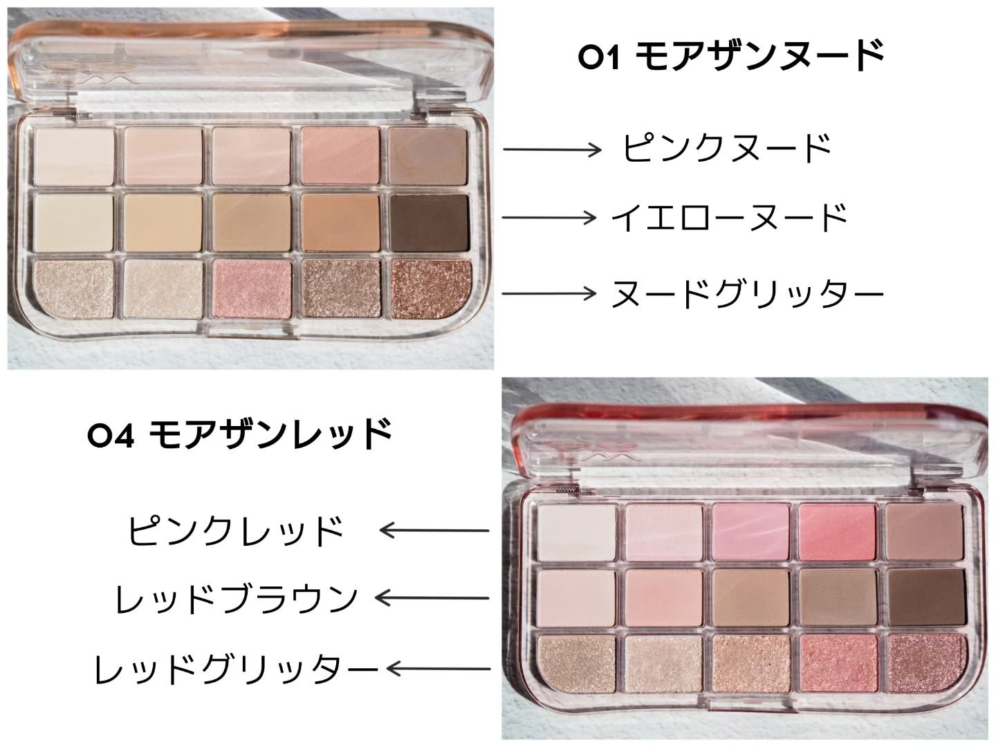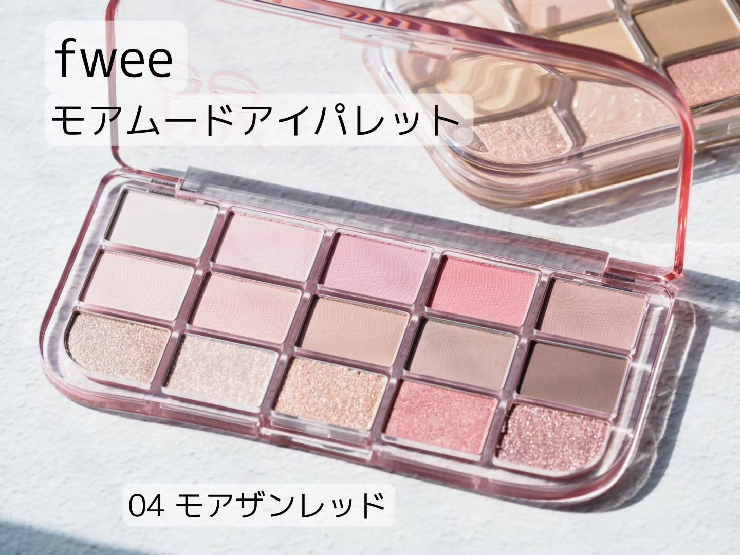 Amazonセールで買ったfweeのアイシャドウ🧸モアムードアイパレット🥐01モアザンヌード🍓04モアザンレッド彩度の高すぎないマットで自然な陰影+キラキラのメリハリで簡単に洒落顔になる。ラメも多色のグリッターや透明感のあるシマーとバリエーシ...