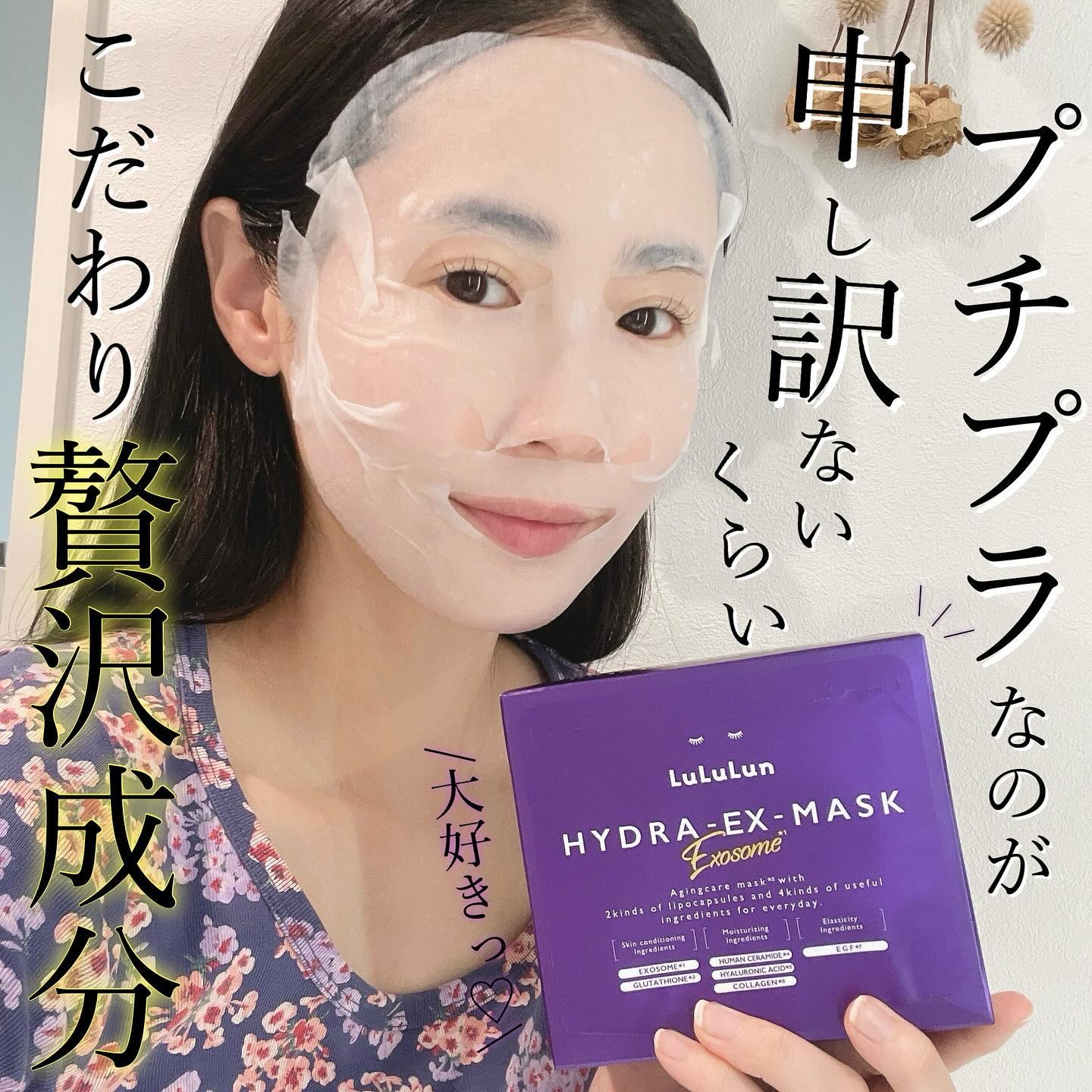 - ルルルンハイドラシリーズから新登場。うるおいにプラスするのは、「エクソソーム*1」。先端再生テクノロジーにインスパイアされた、デイリーエイジングケア※1マスクです。白玉※2グルタチオン*2をプラス配合し、弾力・透明感※3・つやめきのあるなめらかなお肌へ導きます。 (*1 整肌成分 ヒト脂肪由来間葉系細胞エクソソーム *2 整肌成分 グルタチオン、アルブチン、レシチン ※1 年齢に応じて肌へうるおいと弾力を与えるケアのこと ※2 白玉のようなキメが整ったツヤのある肌のこと ※3 うるおいを与えて、乾燥によるくすみを防ぐ)